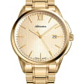 Часы Adriatica A1290.1161Q представляют собой идеальное сочетание элегантности и функциональности, разработанное для современных мужчин. Их стильный циферблат защищен сапфировым стекломСапфировое стеклоПрочный и надёжный материал из кристалла сапфира синтетического происхождения, характеризующийся особой твёрдостью и устойчивостью к царапинам и повреждениям., что придает дополнительную устойчивость к царапинам. Золотистый корпус и безельБезельВнешний ободок, закрепляющий стекло. В спортивных часах так называется поворотное кольцо с делениями на циферблате, выполняет роль таймера – замеряет отрезки времени на шкале. Неподвижный безель – элемент декора. Однонаправленно вращающийся безель на дайверских часах позволяет фиксировать моменты погружения и выныривания на поверхность. выполнен из нержавеющей стали с PVDPVDУльтратонкое покрытие наносится в технике вакуумного напыления, сочетает в себе нитрид титана особой прочности со слоем золота или оксида хрома. Несёт в себе декоративную или защитную функцию. покрытием, подчеркивая их изысканность и долговечность. Надежный кварцевый механизм с калибром ETA F06 (PreciDrive) гарантирует точность времени, а водозащита WR 50 (5 ATM) обеспечивает защиту от воды в различных условиях. Браслет из нержавеющей стали, с PVDPVDУльтратонкое покрытие наносится в технике вакуумного напыления, сочетает в себе нитрид титана особой прочности со слоем золота или оксида хрома. Несёт в себе декоративную или защитную функцию.-покрытием и с застежкой «бабочка»Застёжка "бабочка"Такой вид застёжки дополняется предохранителями, помогающими избежать случайного раскрытия браслета. Обладают изящным исполнением. гармонично дополняет общий дизайн и обеспечивает комфортное ношение на запястье. Часы оснащены функцией отображения даты в окошке в положении 3 часа, что добавляет практичности в повседневной жизни. Люминесцентное покрытиеЛюминесцентное покрытиеПозволяет считывать показания времени в темноте. Производители наносят на стрелки, часовые индексы, безель или поверхность циферблата светонакопительный состав, дающий холодное свечение. на стрелках и метках обеспечивает отличную видимость в темноте.