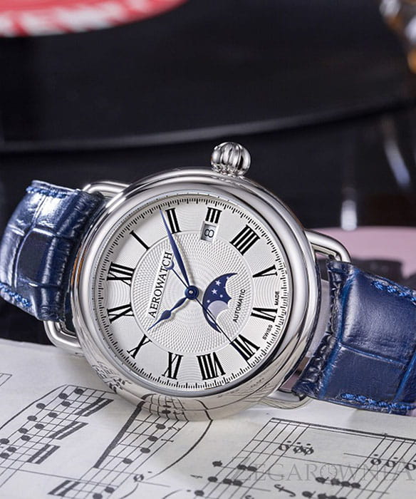 Мужские швейцарские механические часы с лунным календарем Aerowatch 77983 AA01, механический механизм (автоматический калибр) с высокой точностью. Сапфировое стекло устойчивое к появлению царапин, обладающее высокой прозрачностью. Класс водозащиты: 50 метров, позволит защитить корпус от случайных брызг или капель дождя. Корпус часов изготовлен из стали, цвета.