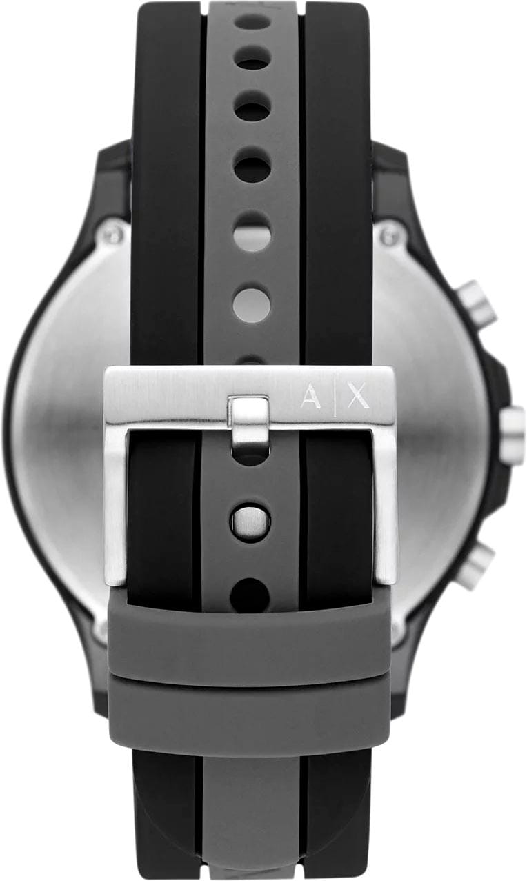 Мужские наручные часы-хронографХронографФункция позволяет измерять отрезки времени с особой точностью: часы, минуты, секунды. Верным признаком хронографа является наличие на циферблате 3 дополнительных окошек-счётчиков. с секундомеромСекундомерСекундоме́р — прибор, способный измерять интервалы времени с точностью до долей секунды. Armani Exchange Hampton AX2447, кварцевый механизм с высокой точностью. Класс водозащиты: 50 метров, позволит защитить корпус от случайных брызг или капель дождя. Корпус часов изготовлен из пластика. Метки в виде штрихов. Окошко даты находится между отметками 4 и 5 часов. Заводная головка с защитой. Стальная задняя крышка крепится на 4-х винтах. Силиконовый ремешок с классической застежкой.