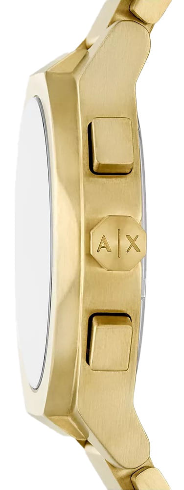 Мужские наручные часы-хронографХронографФункция позволяет измерять отрезки времени с особой точностью: часы, минуты, секунды. Верным признаком хронографа является наличие на циферблате 3 дополнительных окошек-счётчиков. Armani Exchange Rafael AX4180 сочетают в себе практичность и стильный дизайн, идеально подходя как для повседневной носки, так и для занятий спортом. Часы оснащены круглым корпусом из нержавеющей стали с IP-покрытиемIP-покрытиеМетод ионного напыления. Демонстрирует повышенную устойчивость к истиранию, окислению и химическим веществам. Под воздействием высокого давления и температуры около 1500°C молекулы металла надёжно соединяются с частицами корпуса часов., диаметром 42 мм. Особенностью модели является наличие окошка даты, расположенного между отметками 4 и 5 часов, что добавляет функциональности аксессуару. Стрелки обладают люминесцентным покрытиемЛюминесцентное покрытиеПозволяет считывать показания времени в темноте. Производители наносят на стрелки, часовые индексы, безель или поверхность циферблата светонакопительный состав, дающий холодное свечение., которое светится в темноте после зарядки на свету, обеспечивая отличную видимость в любых условиях. Защиту циферблата обеспечивают минеральное стеклоМинеральное стеклоМинеральное стекло представляет собой искусственно выращенный минерал кварца. Такое стекло отличается особой устойчивостью к повреждениям и царапинам. Уступает по некоторым качествам сапфировому стеклу., которое устойчиво к царапинам и сохраняет прозрачность на протяжении всего срока службы. Стальной браслет на раскладной застёжкеРаскладная застёжкаТакой тип застёжки используется только на браслетах из металла. Она никогда не раскрывается полностью, происходит разделение на 2 и более частей. Раскладывающая застёжка снизит вероятность потери часов к минимуму. не только комфортен в ношении, но и практичен благодаря своей прочности. Модель обладает водозащитой до 50 метров, что позволит защитить корпус от случайных брызг или капель дождя.