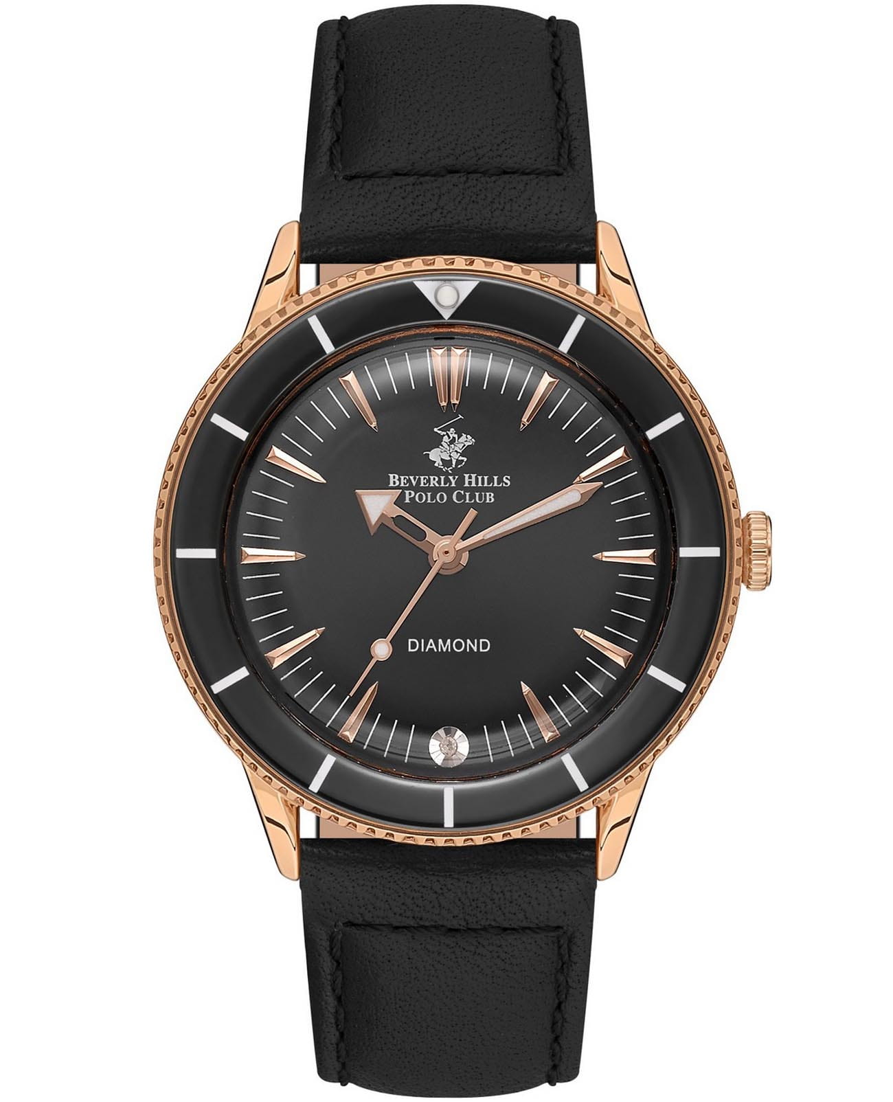 Американские женские часы с минеральным стекломМинеральное стеклоМинеральное стекло представляет собой искусственно выращенный минерал кварца. Такое стекло отличается особой устойчивостью к повреждениям и царапинам. Уступает по некоторым качествам сапфировому стеклу. Beverly Hills Polo Club BP3580C.451, кварцевый механизм с высокой точностью. Класс водозащиты: 50 метров, позволит защитить корпус от случайных брызг или капель дождя. Корпус часов изготовлен из суперметалла с IP-покрытиемIP-покрытиеМетод ионного напыления. Демонстрирует повышенную устойчивость к истиранию, окислению и химическим веществам. Под воздействием высокого давления и температуры около 1500°C молекулы металла надёжно соединяются с частицами корпуса часов.. Кожаный ремешок на стандартной застёжке. Стрелки и метки с люминесцентным покрытиемЛюминесцентное покрытиеПозволяет считывать показания времени в темноте. Производители наносят на стрелки, часовые индексы, безель или поверхность циферблата светонакопительный состав, дающий холодное свечение.. Циферблат инкрустирован синтетическим бриллиантом. БезельБезельВнешний ободок, закрепляющий стекло. В спортивных часах так называется поворотное кольцо с делениями на циферблате, выполняет роль таймера – замеряет отрезки времени на шкале. Неподвижный безель – элемент декора. Однонаправленно вращающийся безель на дайверских часах позволяет фиксировать моменты погружения и выныривания на поверхность. с PVD-покрытиемPVDУльтратонкое покрытие наносится в технике вакуумного напыления, сочетает в себе нитрид титана особой прочности со слоем золота или оксида хрома. Несёт в себе декоративную или защитную функцию..