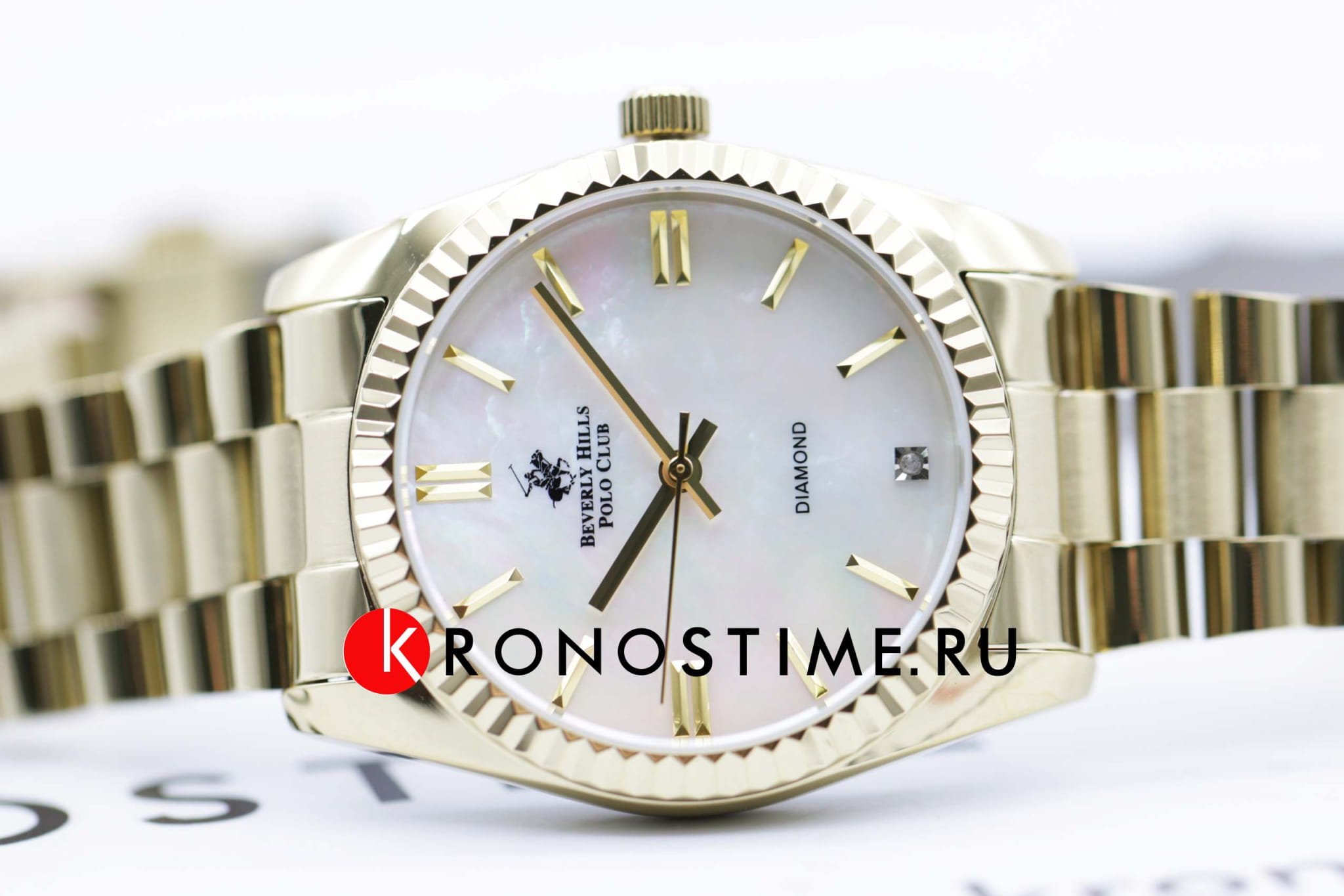 Американские женские часы с минеральным стеклом Beverly Hills Polo Club BP3172C.120, кварцевый механизм с высокой точностью. Класс водозащиты: 30 метров, позволит защитить корпус от случайных брызг или капель дождя. Корпус часов изготовлен из суперметалла c IP-покрытиемIP-покрытиеМетод ионного напыления. Демонстрирует повышенную устойчивость к истиранию, окислению и химическим веществам. Под воздействием высокого давления и температуры около 1500°C молекулы металла надёжно соединяются с частицами корпуса часов. цвета желтое золото. Стальной браслет с раскладывающейся застёжкойРаскладная застёжкаТакой тип застёжки используется только на браслетах из металла. Она никогда не раскрывается полностью, происходит разделение на 2 и более частей. Раскладывающая застёжка снизит вероятность потери часов к минимуму.. Перламутровый циферблат инкрустирован одним бриллиантом.