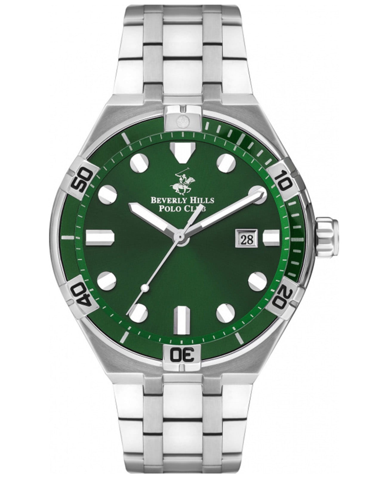 Американские мужские часы Beverly Hills Polo Club BP3404X.370 с минеральным стекломМинеральное стеклоМинеральное стекло представляет собой искусственно выращенный минерал кварца. Такое стекло отличается особой устойчивостью к повреждениям и царапинам. Уступает по некоторым качествам сапфировому стеклу., кварцевый механизм с высокой точностью. Класс водозащиты: 100 метров, позволит защитить корпус от случайных брызг или капель дождя. Корпус часов изготовлен из стали. Стальной браслет с раскладной застёжкойРаскладная застёжкаТакой тип застёжки используется только на браслетах из металла. Она никогда не раскрывается полностью, происходит разделение на 2 и более частей. Раскладывающая застёжка снизит вероятность потери часов к минимуму.. Стрелки и метки с люминесцентным покрытиемЛюминесцентное покрытиеПозволяет считывать показания времени в темноте. Производители наносят на стрелки, часовые индексы, безель или поверхность циферблата светонакопительный состав, дающий холодное свечение.. Окошко даты находится в положении 3 часа. БезельБезельВнешний ободок, закрепляющий стекло. В спортивных часах так называется поворотное кольцо с делениями на циферблате, выполняет роль таймера – замеряет отрезки времени на шкале. Неподвижный безель – элемент декора. Однонаправленно вращающийся безель на дайверских часах позволяет фиксировать моменты погружения и выныривания на поверхность. с PVD-покрытиемPVDУльтратонкое покрытие наносится в технике вакуумного напыления, сочетает в себе нитрид титана особой прочности со слоем золота или оксида хрома. Несёт в себе декоративную или защитную функцию..