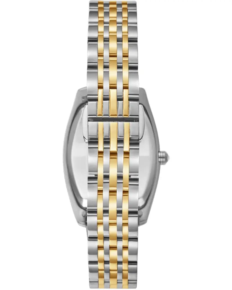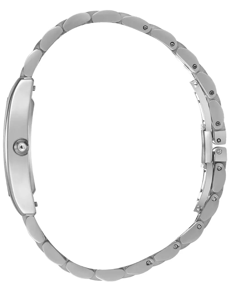 Модель оснащена кварцевым механизмом, обеспечивающим точное измерение времени. Металлический браслет с золотистым покрытиемPVDУльтратонкое покрытие наносится в технике вакуумного напыления, сочетает в себе нитрид титана особой прочности со слоем золота или оксида хрома. Несёт в себе декоративную или защитную функцию. дополнен застёжкой-бабочкойЗастёжка "бабочка"Такой вид застёжки дополняется предохранителями, помогающими избежать случайного раскрытия браслета. Обладают изящным исполнением. , которая гарантирует комфортное ношение и надёжную фиксацию.