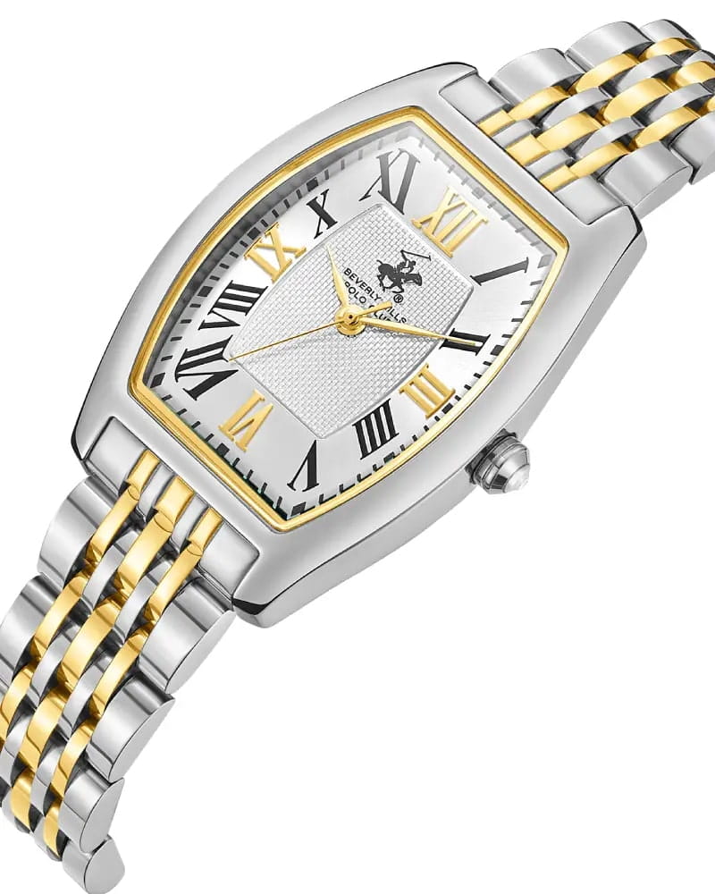 Часы Beverly Hills Polo Club BP3716X.230 — это элегантный женский аксессуар, который сочетает стиль и функциональность. Корпус выполнен из нержавеющей стали с золотистым покрытиемPVDУльтратонкое покрытие наносится в технике вакуумного напыления, сочетает в себе нитрид титана особой прочности со слоем золота или оксида хрома. Несёт в себе декоративную или защитную функцию., что придаёт часам изысканный и утончённый вид. Перламутровый циферблат украшен кристаллами, добавляющими роскошности. Циферблат защищён минеральным стекломМинеральное стеклоМинеральное стекло представляет собой искусственно выращенный минерал кварца. Такое стекло отличается особой устойчивостью к повреждениям и царапинам. Уступает по некоторым качествам сапфировому стеклу., устойчивым к царапинам и повреждениям. БезельБезельВнешний ободок, закрепляющий стекло. В спортивных часах так называется поворотное кольцо с делениями на циферблате, выполняет роль таймера – замеряет отрезки времени на шкале. Неподвижный безель – элемент декора. Однонаправленно вращающийся безель на дайверских часах позволяет фиксировать моменты погружения и выныривания на поверхность. с PVD-покрытиемPVDУльтратонкое покрытие наносится в технике вакуумного напыления, сочетает в себе нитрид титана особой прочности со слоем золота или оксида хрома. Несёт в себе декоративную или защитную функцию.