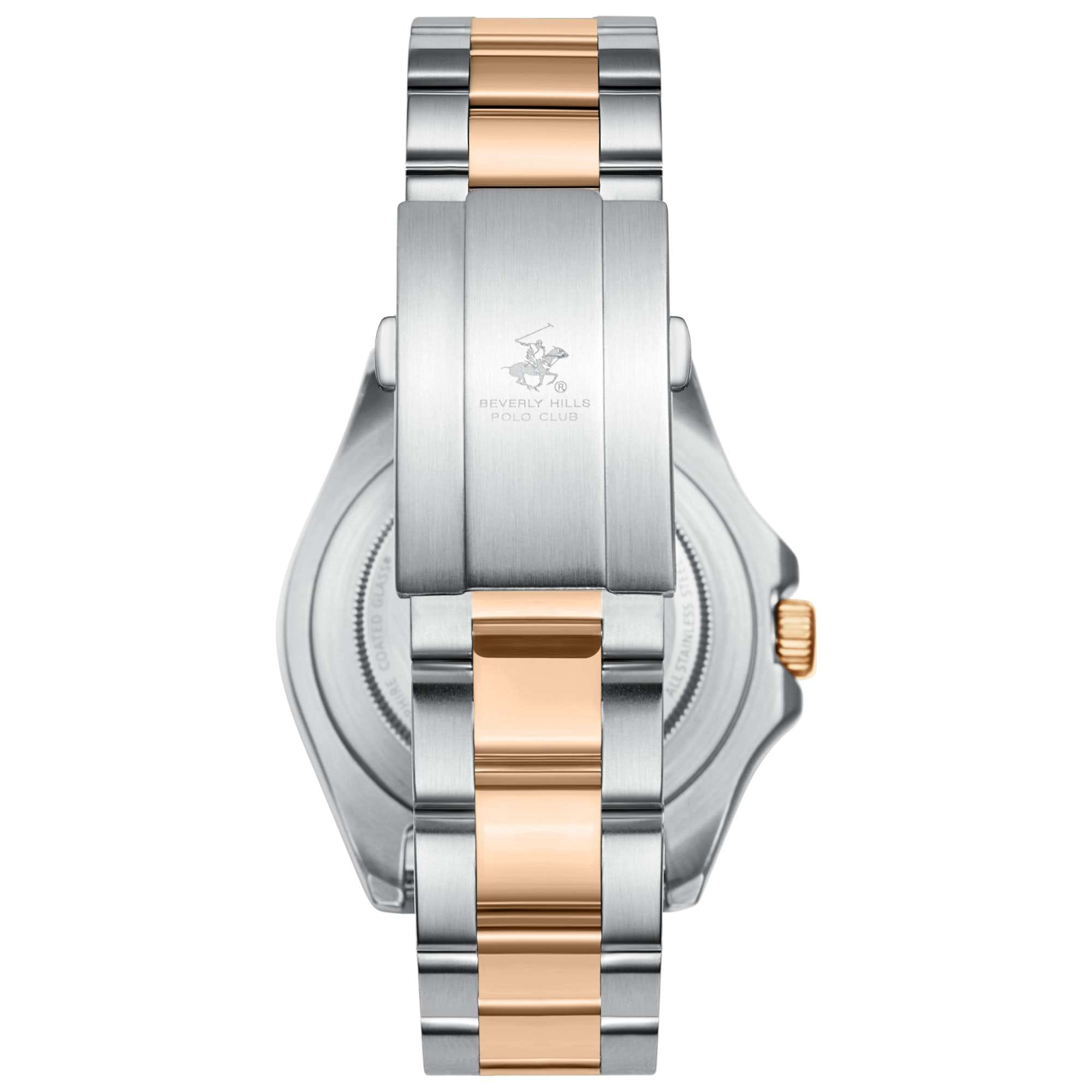 Американские мужские часы Beverly Hills Polo Club BP3797X.550 - это стильный мужской аксессуар, который сочетает элегантный дизайн и практичность. Корпус выполнен из нержавеющей стали серебристого цвета, диаметром 40,5 мм, что обеспечивает долговечность и утончённый внешний вид. Надежное минеральное стеклоМинеральное стеклоМинеральное стекло представляет собой искусственно выращенный минерал кварца. Такое стекло отличается особой устойчивостью к повреждениям и царапинам. Уступает по некоторым качествам сапфировому стеклу. с сапфировым покрытием защищает циферблат от царапин и обеспечивает долговечность. Поворотный безельБезельВнешний ободок, закрепляющий стекло. В спортивных часах так называется поворотное кольцо с делениями на циферблате, выполняет роль таймера – замеряет отрезки времени на шкале. Неподвижный безель – элемент декора. Однонаправленно вращающийся безель на дайверских часах позволяет фиксировать моменты погружения и выныривания на поверхность. с IP-покрытиемIP-покрытиеМетод ионного напыления. Демонстрирует повышенную устойчивость к истиранию, окислению и химическим веществам. Под воздействием высокого давления и температуры около 1500°C молекулы металла надёжно соединяются с частицами корпуса часов.. Модель оснащена кварцевым механизмом, обеспечивающим высокую точность хода. Стальной браслет на раскладной застёжкеРаскладная застёжкаТакой тип застёжки используется только на браслетах из металла. Она никогда не раскрывается полностью, происходит разделение на 2 и более частей. Раскладывающая застёжка снизит вероятность потери часов к минимуму. с частичным IP-покрытиемIP-покрытиеМетод ионного напыления. Демонстрирует повышенную устойчивость к истиранию, окислению и химическим веществам. Под воздействием высокого давления и температуры около 1500°C молекулы металла надёжно соединяются с частицами корпуса часов. цвета розового золота обеспечивает комфортное ношение. Окошко даты находится в положении 3 часа. Стрелки и метки с люминесцентным покрытиемЛюминесцентное покрытиеПозволяет считывать показания времени в темноте. Производители наносят на стрелки, часовые индексы, безель или поверхность циферблата светонакопительный состав, дающий холодное свечение. позволяют легко считывать время даже в условиях недостаточного освещения. Водозащита 50 метров позволит защитить корпус от случайных брызг или капель дождя. Эта модель – отличный выбор для тех, кто ищет сочетание стиля, качества и функциональности. Часы станут не только полезным аксессуаром, но и выразительным элементом вашего имиджа.