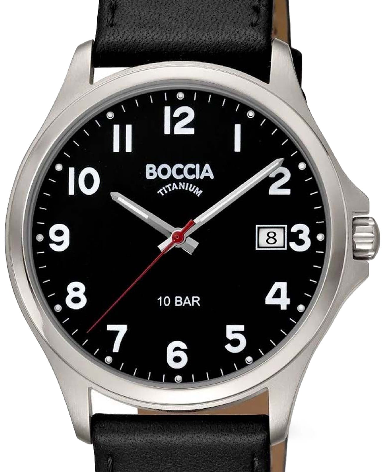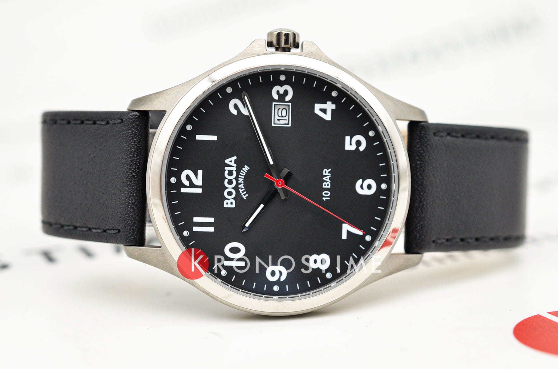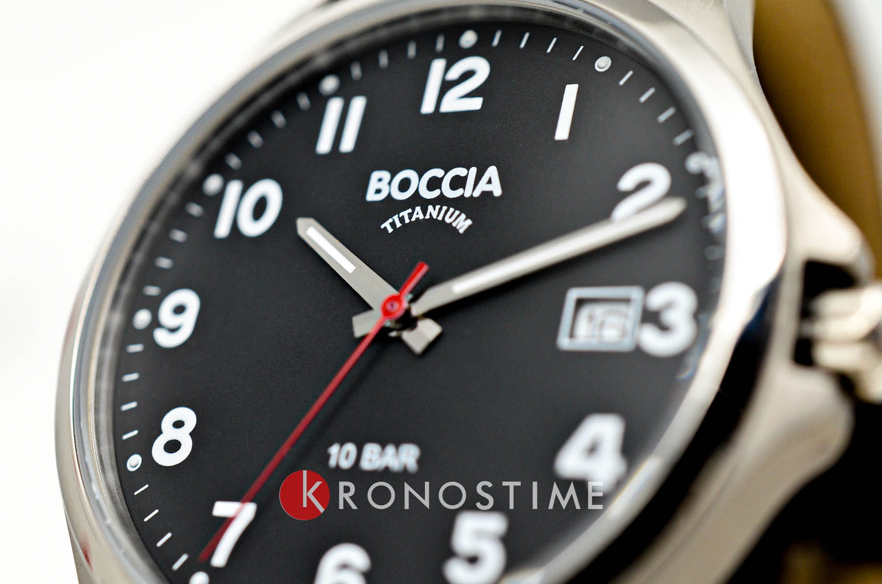Мужские наручные часы Boccia Titanium 3659-01 с надёжным кварцевым механизмом. Корпус часов изготовлен из титана. Минеральное стеклоМинеральное стеклоМинеральное стекло представляет собой искусственно выращенный минерал кварца. Такое стекло отличается особой устойчивостью к повреждениям и царапинам. Уступает по некоторым качествам сапфировому стеклу. устойчивое к мелким механическим повреждениям. Класс водозащиты: 100 метров, позволит плавать, нырять и заниматься другими водными видами спорта. Кожаный ремешок на стандартной застёжке. Окошко даты находится в положении 3 часа. Стрелки с люминесцентным покрытиемЛюминесцентное покрытиеПозволяет считывать показания времени в темноте. Производители наносят на стрелки, часовые индексы, безель или поверхность циферблата светонакопительный состав, дающий холодное свечение..
