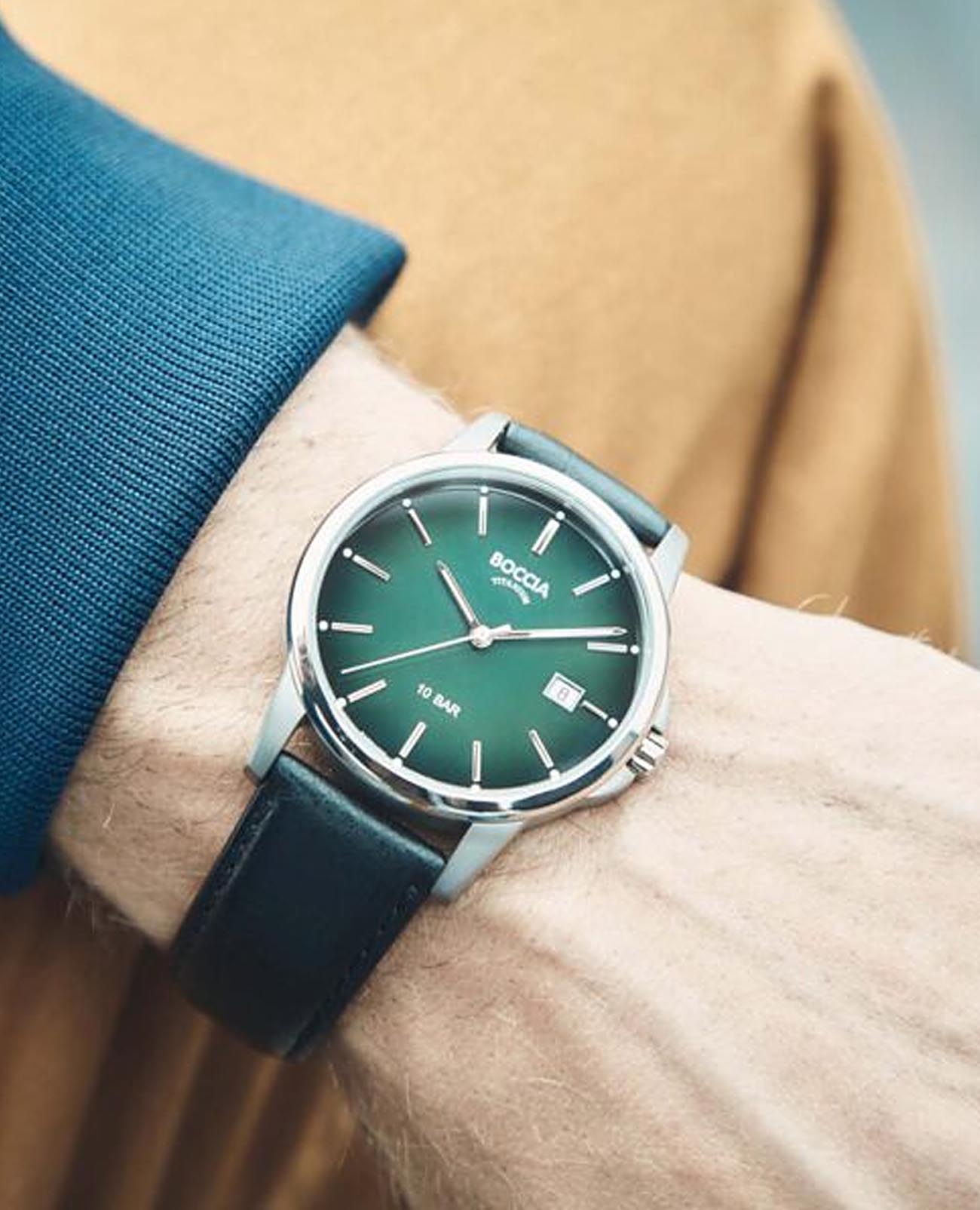 Мужские немецкие титановые часы Boccia Titanium Circle-Oval 3633-02, кварцевый механизм с высокой точностью. Сапфировое стеклоСапфировое стеклоПрочный и надёжный материал из кристалла сапфира синтетического происхождения, характеризующийся особой твёрдостью и устойчивостью к царапинам и повреждениям. устойчивое к появлению царапин, обладающее высокой прозрачностью. Корпус изготовлен из титана. Стрелки с люминесцентным покрытиемЛюминесцентное покрытиеПозволяет считывать показания времени в темноте. Производители наносят на стрелки, часовые индексы, безель или поверхность циферблата светонакопительный состав, дающий холодное свечение.. Окошко даты в положении 3 часов. Класс водозащиты: 100 метров, позволит плавать, нырять и заниматься другими водными видами спорта. Кожаный браслет на стандартной застежке.