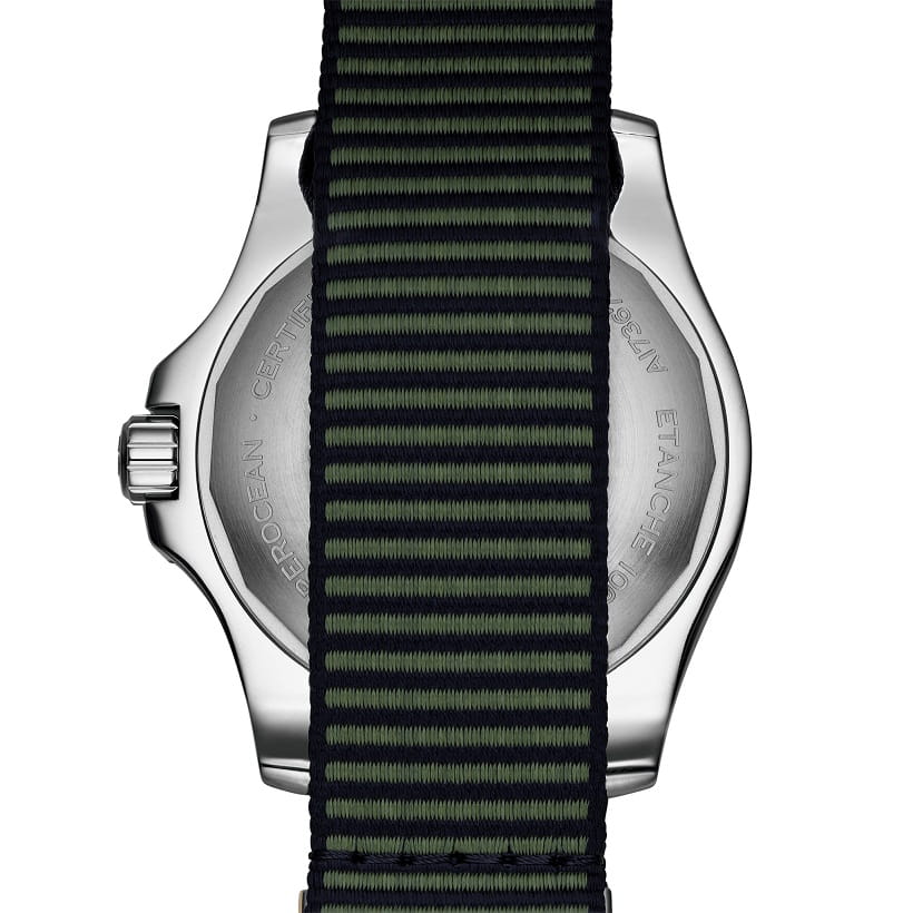 Эта модель выполнена в прочном корпусе из нержавеющей стали диаметром 44 мм с матовым зеленым циферблатом. Она поставляется в комплекте с зеленым цельным ремешком из волокна ECONYL®, изготовленного из нейлоновых отходов, извлекаемых из океана – например, из рыболовных сетей. Эта модель не только с достоинством выдержит погружение на морские глубины (до 100 бар/1000 метров) – часы Superocean Automatic 44 Outerknown равным образом понравятся и тем, чьи амбиции лежат ближе к берегу.