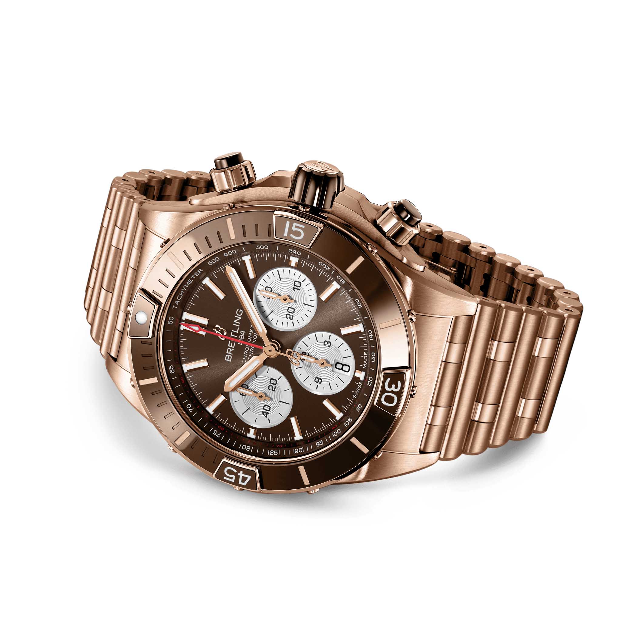 Мужские швейцарские часы с 18-каратным красным золотом Breitling Super Chronomat B01 44 RB0136E31Q1R1, механический механизм (автоматический калибр) с высокой точностью. Сапфировое стекло устойчивое к появлению царапин, обладающее высокой прозрачностью. Класс водозащиты: 200 метров, позволит плавать, нырять и заниматься другими водными видами спорта. Корпус часов изготовлен из золота, цвета.