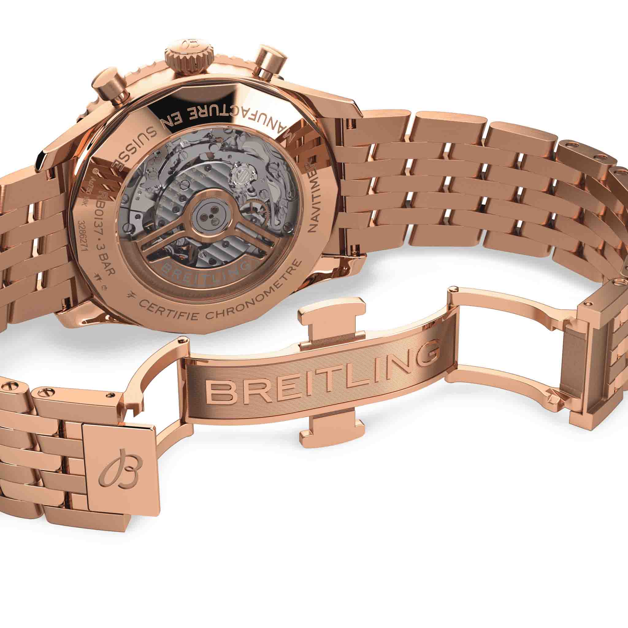Мужские швейцарские часы-хронографХронографФункция позволяет измерять отрезки времени с особой точностью: часы, минуты, секунды. Верным признаком хронографа является наличие на циферблате 3 дополнительных окошек-счётчиков. с секундомеромСекундомерСекундоме́р — прибор, способный измерять интервалы времени с точностью до долей секунды. Breitling Navitimer B01 Chronograph 46 RB0137241G1R1, механический механизм (автоматический калибр) с высокой точностью. Сапфировое стеклоСапфировое стеклоПрочный и надёжный материал из кристалла сапфира синтетического происхождения, характеризующийся особой твёрдостью и устойчивостью к царапинам и повреждениям. устойчивое к появлению царапин, обладающее высокой прозрачностью. Класс водозащиты: 30 метров, позволит защитить корпус от случайных брызг или капель дождя. Корпус часов изготовлен из 18-каратного золота18-каратное золотоОбозначение по каратной системе пробирования, оно показывает, сколько драгоценного металла содержится в изделии. 18 карат - в составе 75% чистого золота, соответствует 750 пробе.