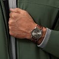 Выпуклое сапфировое стекло устойчивое к появлению царапин, обладающее высокой прозрачностью и антибликовым покрытием с обеих сторон. Корпус часов изготовлен из нержавеющей стали и 18-каратного красного золота. Коричневый ремешок из кожи аллигатора с застежкой из нержавеющей стали. Класс водозащиты: 30 метров, позволит защитить корпус от случайных брызг или капель дождя.
