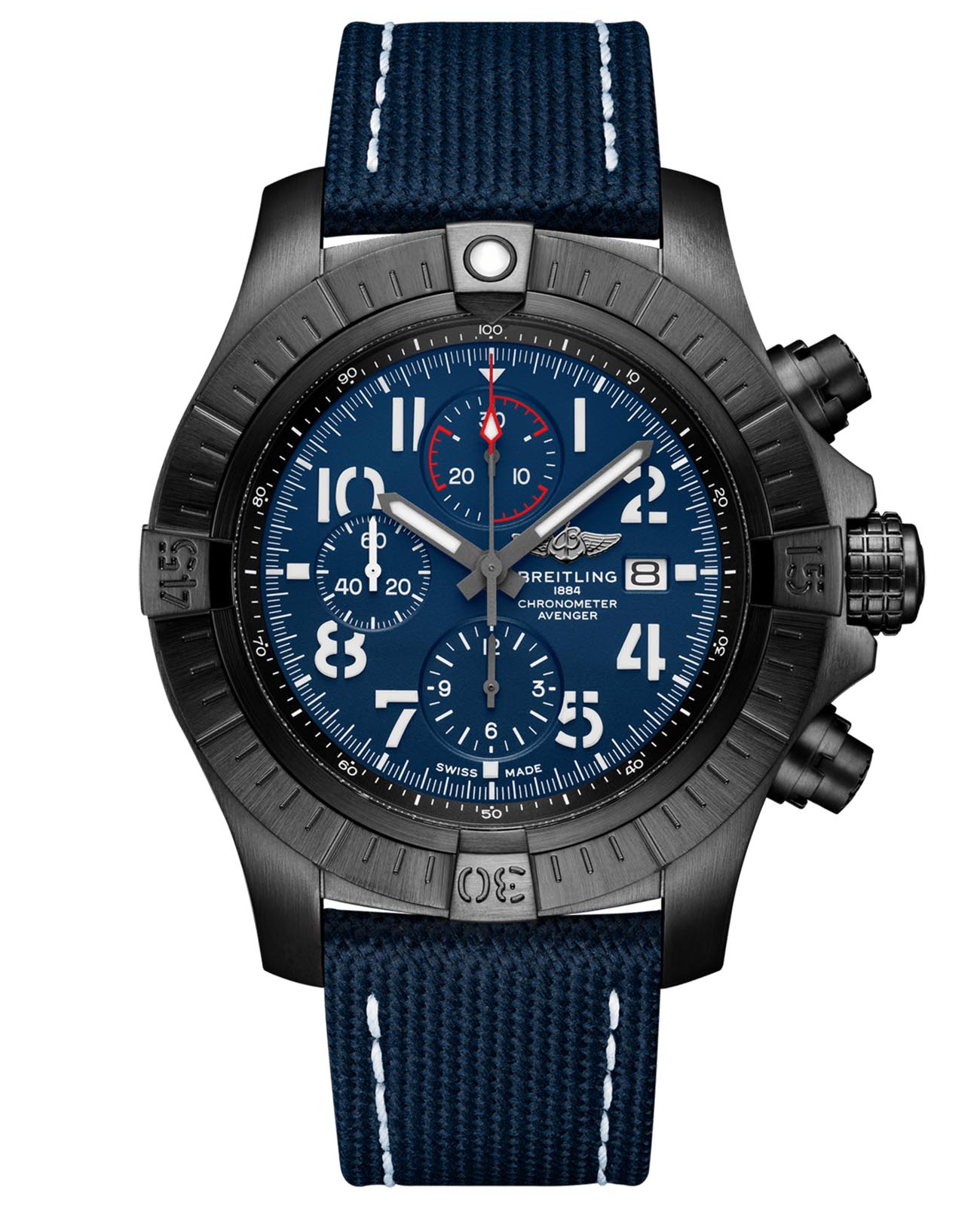 Смелый дизайн, чрезвычайно прочная конструкция и ударопрочность стали отличительными чертами модели Super Avenger Chronograph 48 Night Mission, которая уже успела завоевать невероятную популярность. Будучи настоящим представителем семейства Avenger, эти часы Breitling подходят для ношения с перчатками и гарантируют пилоту-любителю беспрецедентный уровень безопасности и надежности.