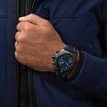 Класс водозащиты: 300 метров, позволит плавать, нырять и заниматься другими водными видами спорта. Корпус часов изготовлен из титана с высокопрочным углеродным покрытием (DLC). Ремешок из телячьей кожи синего цвета с пряжкой из нержавеющей стали с высокопрочным углеродным покрытием DLC.