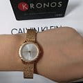 Гармонично сочетаются фактурный безельБезельВнешний ободок, закрепляющий стекло. В спортивных часах так называется поворотное кольцо с делениями на циферблате, выполняет роль таймера – замеряет отрезки времени на шкале. Неподвижный безель – элемент декора. Однонаправленно вращающийся безель на дайверских часах позволяет фиксировать моменты погружения и выныривания на поверхность. с браслетом плетения Mesh. Привлекательно выглядит игра оттенков серебристого циферблата «солнечные лучи» и PVD-покрытияPVDУльтратонкое покрытие наносится в технике вакуумного напыления, сочетает в себе нитрид титана особой прочности со слоем золота или оксида хрома. Несёт в себе декоративную или защитную функцию. цвета розового золота. Швейцарский кварцевый калибр от ETA. Минеральное стекло. Водонепроницаемость до 3 бар.