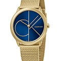 Синий циферблат в fashion-стиле дополнен брендовым логотипом. Золотистого цвета аксессуара удалось добиться за счёт нанесения PVD-покрытияPVDУльтратонкое покрытие наносится в технике вакуумного напыления, сочетает в себе нитрид титана особой прочности со слоем золота или оксида хрома. Несёт в себе декоративную или защитную функцию.. Кварцевый механизм ETA 901.001 от швейцарской фабрики имеет высокую точность хода.