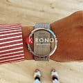 Полупрозрачный корпус имеет циферблат с тиснёным узором, визуально перетекающим в браслет миланского плетения. Оригинальная модель работает за счёт швейцарского кварцевого механизма ETA F03.111. Сапфировое стекло устойчиво к царапинам.