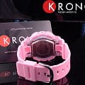 Популярная модель в нежно-розовом "девичьем" исполнении имеет противоударный корпусУдаропрочный корпусМеханизм заключён в корпус, выполненный из современных материалов, устойчивых к ударам, механическим повреждениям и падению с высоты: инновационный пластик, карбон, нержавеющая сталь, титан., выдерживающий механические повреждения и падение с высоты. Он выполнен из полимерного пластика, такой же материал был выбран для гибкого браслета. Кварцевый механизм работает от батарейки, рассчитанной на 2 года службы. Светодиодная подсветкаСветодиодная подсветкаСветодиодная или LED-подсветка обеспечивает появление яркого холодного свечения за счёт LED-элементов - маленьких лампочек. Они потребляют минимальное количество энергии, чаще всего можно встретить 1 светодиод, в нижней части циферблата. дисплея. Минеральное стеклоМинеральное стеклоМинеральное стекло представляет собой искусственно выращенный минерал кварца. Такое стекло отличается особой устойчивостью к повреждениям и царапинам. Уступает по некоторым качествам сапфировому стеклу. устойчивое к мелким механическим повреждениям. Ударопрочный корпусУдаропрочный корпусМеханизм заключён в корпус, выполненный из современных материалов, устойчивых к ударам, механическим повреждениям и падению с высоты: инновационный пластик, карбон, нержавеющая сталь, титан. защищает механизм от ударов и вибрации. Циферблат подсвечивается светодиодомСветодиодная подсветкаСветодиодная или LED-подсветка обеспечивает появление яркого холодного свечения за счёт LED-элементов - маленьких лампочек. Они потребляют минимальное количество энергии, чаще всего можно встретить 1 светодиод, в нижней части циферблата.. Мировое времяМировое время Полезное часовое усложнение, отображающее время в основных городах и известных областях по всему миру, оно связано с часовыми поясами, удобно для путешественников и бизнесменов. – 48 городов (29 часовых поясов), всемирное координированное время (UTCUTCВсемирное кординационное время, не имеющее привязки к географическому положению Гринвича, основывается на атомном отсчёте времени. Регулировка времени осуществляется более точно, чем устаревшее GMT.