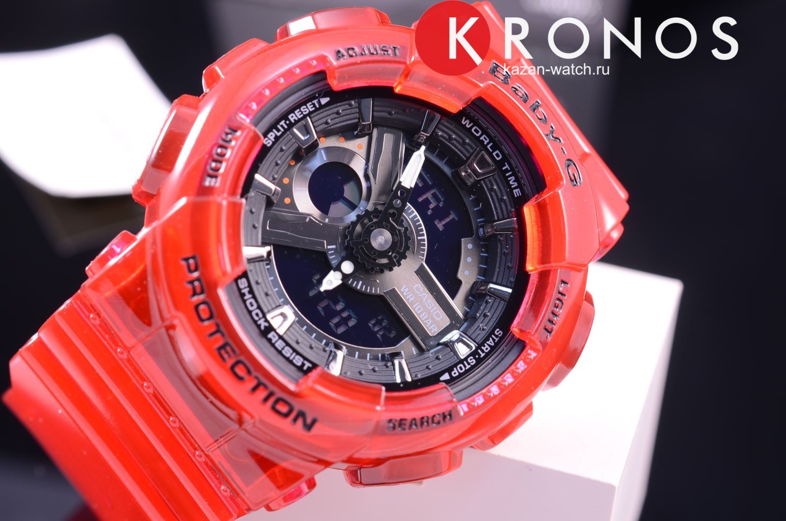 Стильный аксессуар серии Coral Reef Color красного цвета имеет полупрозрачное исполнение, напоминая о кораллах. Яркая модель с глянцевой поверхностью позволит украсить любой образ. Стоит обратить внимание на ударопрочный корпусУдаропрочный корпусМеханизм заключён в корпус, выполненный из современных материалов, устойчивых к ударам, механическим повреждениям и падению с высоты: инновационный пластик, карбон, нержавеющая сталь, титан. из полимерного пластика, отличающегося повышенной устойчивостью к ударам, падению с высоты, повреждениям. Японский кварцевый механизм с точностью хода +/- 30 секунд в месяц работает от батарейки, срок службы которой составляет 2 года. Закаленное минеральное стекло. Циферблат со светодиодной подсветкойСветодиодная подсветкаСветодиодная или LED-подсветка обеспечивает появление яркого холодного свечения за счёт LED-элементов - маленьких лампочек. Они потребляют минимальное количество энергии, чаще всего можно встретить 1 светодиод, в нижней части циферблата.. Надёжный полимерный ремешок. Водозащита 100 метров. 12/24-х часовой формат времени. Автоматический календарь, будильник с функцией повтора, хронографХронографФункция позволяет измерять отрезки времени с особой точностью: часы, минуты, секунды. Верным признаком хронографа является наличие на циферблате 3 дополнительных окошек-счётчиков., секундомер, таймер обратного отсчёта, мировое времяМировое время Полезное часовое усложнение, отображающее время в основных городах и известных областях по всему миру, оно связано с часовыми поясами, удобно для путешественников и бизнесменов. . Габариты: 46,3 x 43,4 x 15,8 мм.