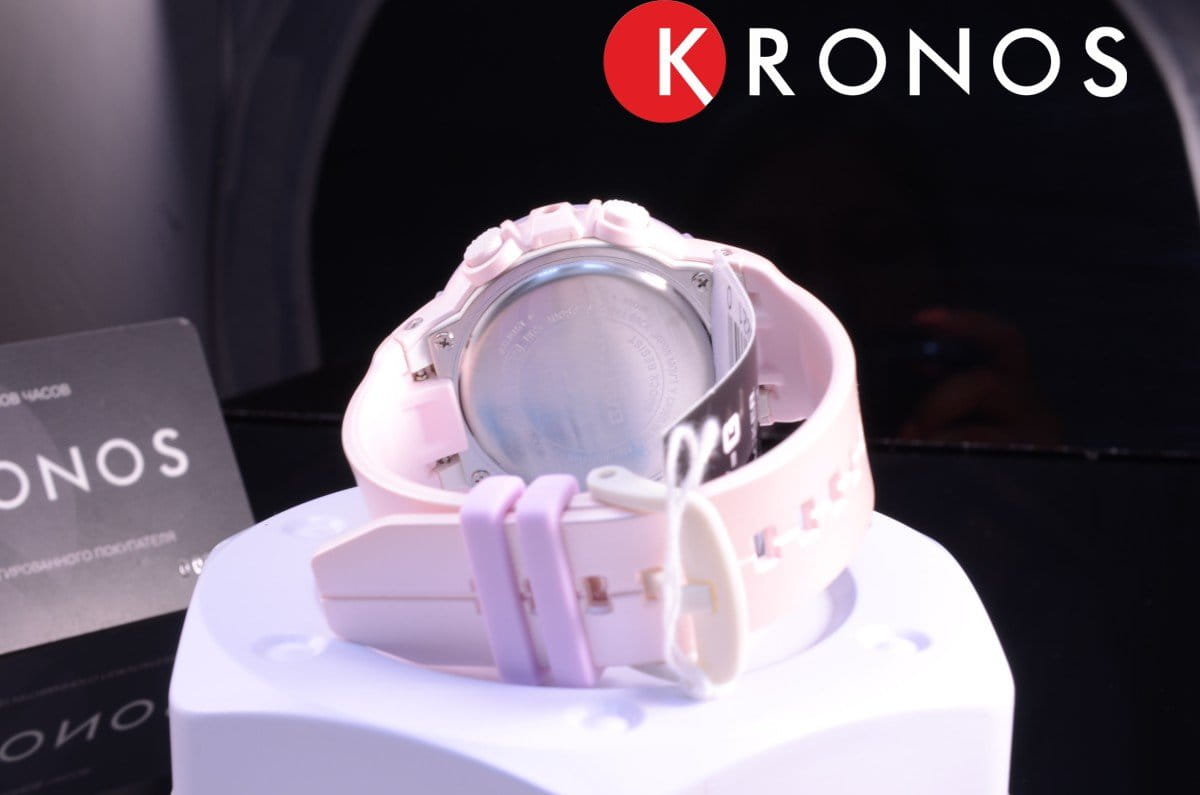 Модель в розово-сиреневой палитре имеет большой лаконичный циферблат в спортивном оформлении, что весьма стильно смотрится на хрупком запястье. Часы имеют функцию шагомера, устройство измеряет количество шагов от 0 до 999999. Вокруг безеляБезельВнешний ободок, закрепляющий стекло. В спортивных часах так называется поворотное кольцо с делениями на циферблате, выполняет роль таймера – замеряет отрезки времени на шкале. Неподвижный безель – элемент декора. Однонаправленно вращающийся безель на дайверских часах позволяет фиксировать моменты погружения и выныривания на поверхность. размечена специальная шкала в процентах, позволяющая наглядно видеть исполнение плана при заданной цели на день (от 1000 до 50000 шагов). Противоударный корпусУдаропрочный корпусМеханизм заключён в корпус, выполненный из современных материалов, устойчивых к ударам, механическим повреждениям и падению с высоты: инновационный пластик, карбон, нержавеющая сталь, титан. и ремешок сделаны из полимерного пластика, выдерживающего высокие нагрузки и падение с высоты. Японский кварцевый калибр измеряет время с точностью хода +/- 15 секунд в месяц. Аккумулятор рассчитан на 2 года службы. Закаленное минеральное стекло. Светодиодная подсветкаСветодиодная подсветкаСветодиодная или LED-подсветка обеспечивает появление яркого холодного свечения за счёт LED-элементов - маленьких лампочек. Они потребляют минимальное количество энергии, чаще всего можно встретить 1 светодиод, в нижней части циферблата.. Водостойкость 10 бар. Автоматический календарь до 2099 года, будильник с функцией повтора, звуковое напоминание об отсутствии физической активности, таймер, секундомер, отображение второго часового пояса. Габариты: 42,6 x 45,2 x 13,3 мм.