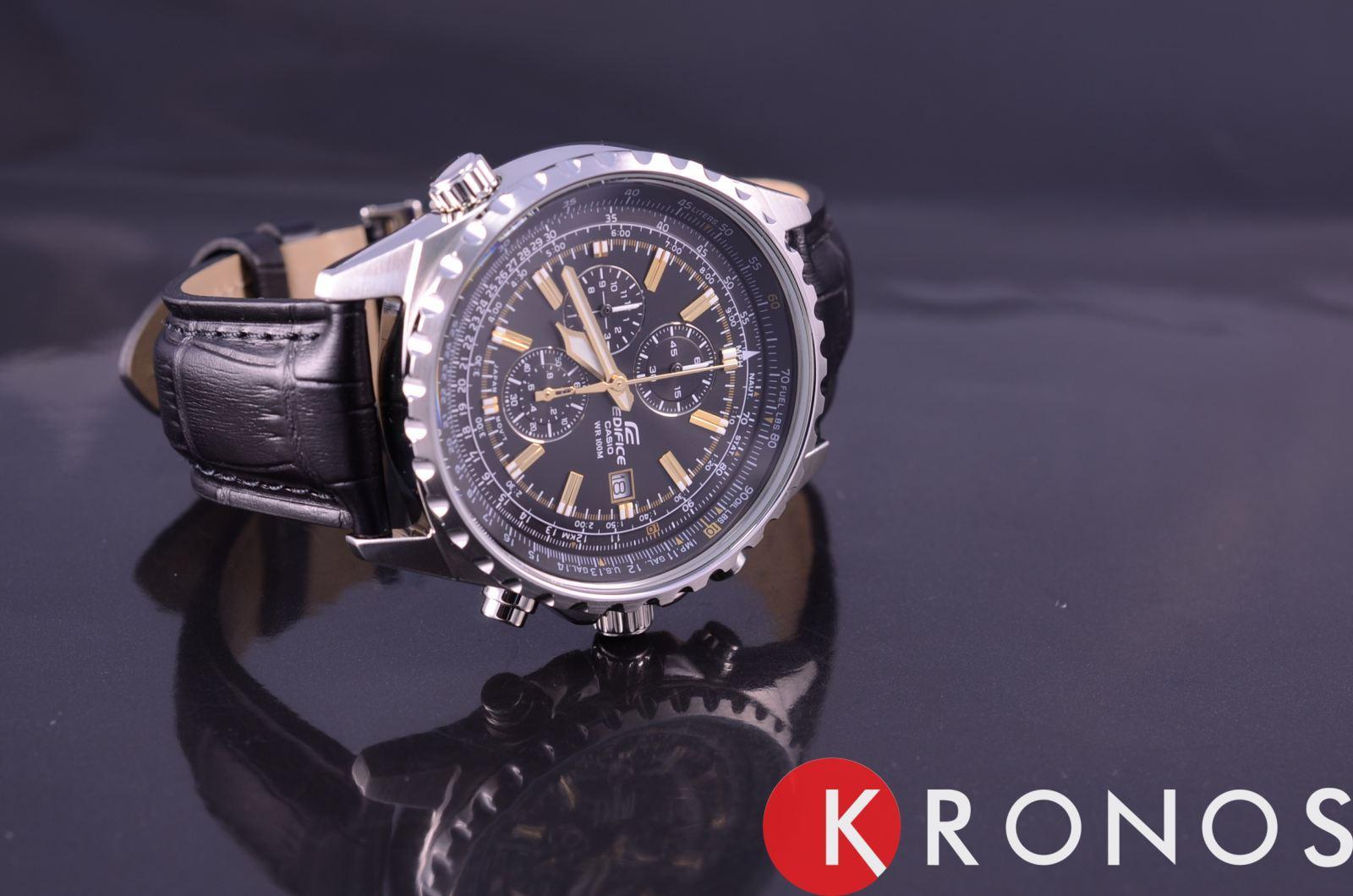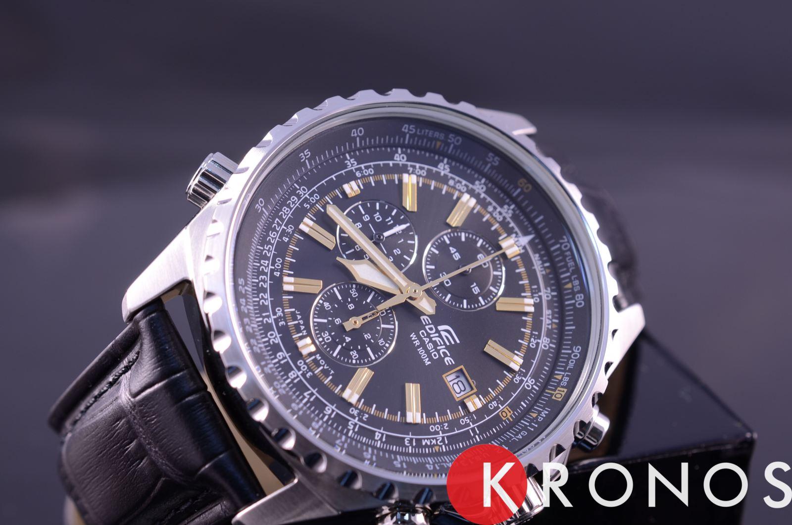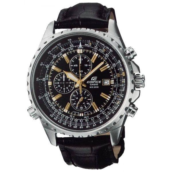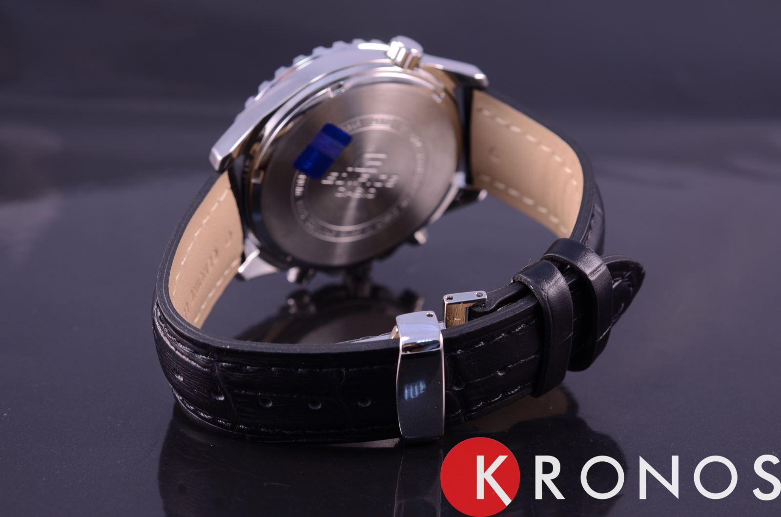 Мужские классические наручные часы Casio Edifice надежные и практичные. Кварцевый японский механизм Miyota. Точность хода не хуже -10 +15 сек./в месяц. Часы оснащены функцией хронографа и тахиметра. Циферблат черного цвета с контрастными индексами. Стрелки и индексы с светонакопительным нанесением. Корпус выполнен из высококачественной стали с антикоррозийными свойствами. Ремешок из натуральной кожи, чёрного цвета. Минеральное стекло устойчиво к появлению царапин. Водонепроницаемость 100М. В часах можно плавать.