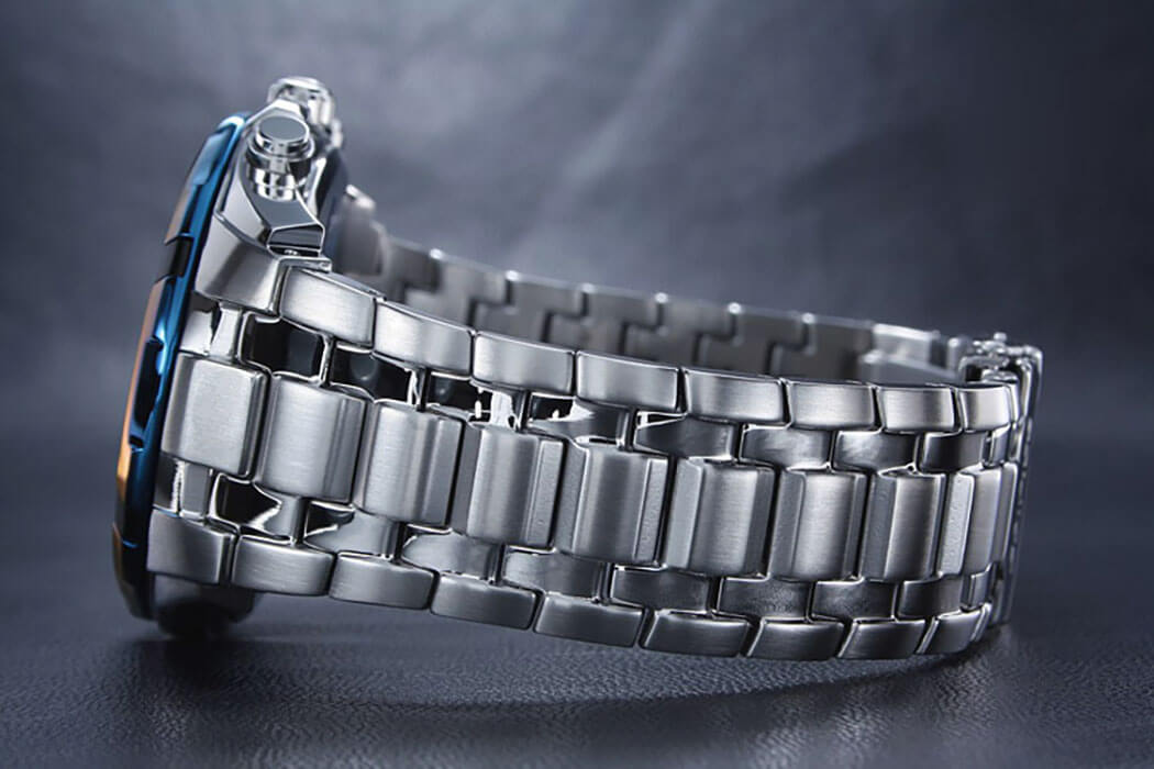 Стильная модель с синими элементами на вашем запястье будет привлекать внимание окружающих, оригинальное исполнение циферблата в сочетании с безупречным качеством используемых материалов даёт ошеломительный эффект. За точность хода +/- 30 секунд в месяц отвечает кварцевый механизм Miyota, батарейка рассчитана на 2 года работы. Минеральное стекло противостоит образованию царапин. Ударопрочный корпусУдаропрочный корпусМеханизм заключён в корпус, выполненный из современных материалов, устойчивых к ударам, механическим повреждениям и падению с высоты: инновационный пластик, карбон, нержавеющая сталь, титан. из нержавеющей стали 316L. Люминесцентная подсветкаЛюминесцентное покрытиеПозволяет считывать показания времени в темноте. Производители наносят на стрелки, часовые индексы, безель или поверхность циферблата светонакопительный состав, дающий холодное свечение.. Стальной браслет с предохранительной застёжкой. безельБезельВнешний ободок, закрепляющий стекло. В спортивных часах так называется поворотное кольцо с делениями на циферблате, выполняет роль таймера – замеряет отрезки времени на шкале. Неподвижный безель – элемент декора. Однонаправленно вращающийся безель на дайверских часах позволяет фиксировать моменты погружения и выныривания на поверхность. с IP-финишемIP-покрытиеМетод ионного напыления. Демонстрирует повышенную устойчивость к истиранию, окислению и химическим веществам. Под воздействием высокого давления и температуры около 1500°C молекулы металла надёжно соединяются с частицами корпуса часов.. Секундомер, хронографХронографФункция позволяет измерять отрезки времени с особой точностью: часы, минуты, секунды. Верным признаком хронографа является наличие на циферблате 3 дополнительных окошек-счётчиков., календарь, тахиметрТахиметрРазмеченная шкала, располагается на ободке или безеле часов. Тахиметр позволяет рассчитать скорость на определённом участке пути, расстояние измеряется в километрах или милях.. Габариты: 48,5 x 53,5 x 11,5 мм.