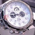 Стильная модель в чёрно-белом исполнении на вашем запястье будет привлекать внимание окружающих, оригинальное исполнение циферблата в сочетании с безупречным качеством используемых материалов даёт ошеломительный эффект. За точность хода +/- 30 секунд в месяц отвечает кварцевый механизм Miyota, батарейка рассчитана на 2 года работы. Минеральное стекло противостоит образованию царапин. Ударопрочный корпусУдаропрочный корпусМеханизм заключён в корпус, выполненный из современных материалов, устойчивых к ударам, механическим повреждениям и падению с высоты: инновационный пластик, карбон, нержавеющая сталь, титан. из нержавеющей стали 316L. Люминесцентная подсветкаЛюминесцентное покрытиеПозволяет считывать показания времени в темноте. Производители наносят на стрелки, часовые индексы, безель или поверхность циферблата светонакопительный состав, дающий холодное свечение.. Стальной браслет с предохранительной застёжкой. безельБезельВнешний ободок, закрепляющий стекло. В спортивных часах так называется поворотное кольцо с делениями на циферблате, выполняет роль таймера – замеряет отрезки времени на шкале. Неподвижный безель – элемент декора. Однонаправленно вращающийся безель на дайверских часах позволяет фиксировать моменты погружения и выныривания на поверхность. с IP-финишемIP-покрытиеМетод ионного напыления. Демонстрирует повышенную устойчивость к истиранию, окислению и химическим веществам. Под воздействием высокого давления и температуры около 1500°C молекулы металла надёжно соединяются с частицами корпуса часов.. Секундомер, хронографХронографФункция позволяет измерять отрезки времени с особой точностью: часы, минуты, секунды. Верным признаком хронографа является наличие на циферблате 3 дополнительных окошек-счётчиков., календарь, тахиметрТахиметрРазмеченная шкала, располагается на ободке или безеле часов. Тахиметр позволяет рассчитать скорость на определённом участке пути, расстояние измеряется в километрах или милях.. Габариты: 48,5 x 53,5 x 11,5 мм.