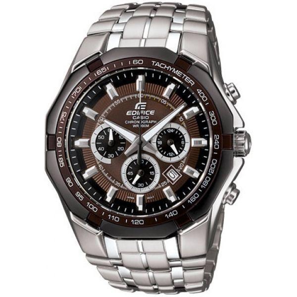 Стильный мужские наручные часы Casio Edifice надежные и практичные. Кварцевый японский механизм Miyota. Точность хода не хуже -10 +15 сек./в месяц. Часы оснащены функцией хронографа и тахиметра. Циферблат шоколадного цвета с контрастными индексами. Безель с IP покрытием коричневого цвета. Стрелки и индексы с светонакопительным нанесением. Корпус и браслет выполнены из высококачественной стали с антикоррозийными свойствами. Минеральное стекло устойчиво к появлению царапин. Водонепроницаемость 100М. В часах можно плавать.