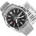 Кварцевый японский механизм Miyota. Часы оснащены календарем. Циферблат черного цвета с контрастными индексами и стрелками. Стрелки и индексы с светонакопительным нанесением. Корпус и браслет выполнены из высококачественной стали с антикоррозийными свойствами. Минеральное стекло устойчиво к появлению царапин Водонепроницаемость (10 Бар). Идеально подходит для плавания с маской и трубкой.