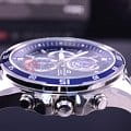Японский мужской хронографХронографФункция позволяет измерять отрезки времени с особой точностью: часы, минуты, секунды. Верным признаком хронографа является наличие на циферблате 3 дополнительных окошек-счётчиков. из коллекции Edifice отражает дух высоких скоростей, брендовая модель поможет подчеркнуть индивидуальный образ.