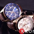 Оригинальный циферблат и чёрный безельБезельВнешний ободок, закрепляющий стекло. В спортивных часах так называется поворотное кольцо с делениями на циферблате, выполняет роль таймера – замеряет отрезки времени на шкале. Неподвижный безель – элемент декора. Однонаправленно вращающийся безель на дайверских часах позволяет фиксировать моменты погружения и выныривания на поверхность. превосходно сочетаются с золотистыми переливами ударопрочного корпусаУдаропрочный корпусМеханизм заключён в корпус, выполненный из современных материалов, устойчивых к ударам, механическим повреждениям и падению с высоты: инновационный пластик, карбон, нержавеющая сталь, титан. с защитным IP-покрытиемIP-покрытиеМетод ионного напыления. Демонстрирует повышенную устойчивость к истиранию, окислению и химическим веществам. Под воздействием высокого давления и температуры около 1500°C молекулы металла надёжно соединяются с частицами корпуса часов.. Приметный аксессуар отлично дополнит брендовый деловой костюм. Работу часов обеспечивает японский кварцевый калибр Miyota с точностью хода +/- 30 секунд в месяц. Батарейка характеризуется 3-летним сроком службы. Коричневый ремешок из натуральной кожи с тиснением под кожу крокодила. Люминесцентная подсветкаЛюминесцентное покрытиеПозволяет считывать показания времени в темноте. Производители наносят на стрелки, часовые индексы, безель или поверхность циферблата светонакопительный состав, дающий холодное свечение.. Закручивающаяся задняя крышка. Заводная головка с системой защиты. Закаленное минеральное стекло. Водонепроницаемость при давлении до 10 бар. ХронографХронографФункция позволяет измерять отрезки времени с особой точностью: часы, минуты, секунды. Верным признаком хронографа является наличие на циферблате 3 дополнительных окошек-счётчиков., секундомер, индикация числа. Габариты: 53 x 47 x 12,3 мм.
