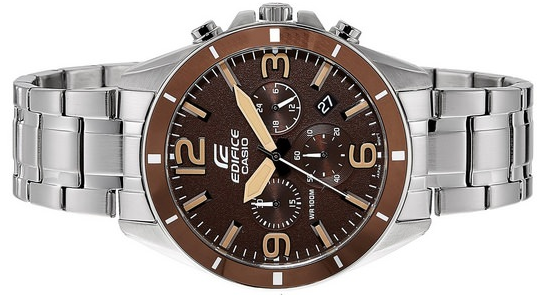 Кварцевый японский механизм Miyota. Точность хода не хуже -10 +15 сек./в месяц. Часы оснащены функцией хронографа, с точностью 1/10с и временем измерения 1ч. Циферблат коричневого цвета с контрастными элементами дизайна. Стрелки и индексы с светонакопительным нанесением. Корпус и браслет выполнены из нержавеющей стали. Безель с IP покрытием коричневого цвета. Минеральное стекло устойчиво к появлению царапин. Водонепроницаемость 100М. В часах можно плавать. Степень водонепроницаемости не является величиной, эквивалентной функциональной рабочей глубине.