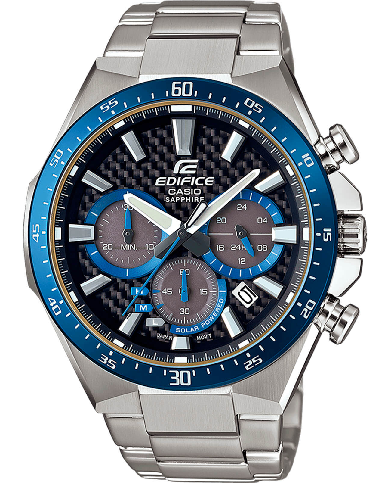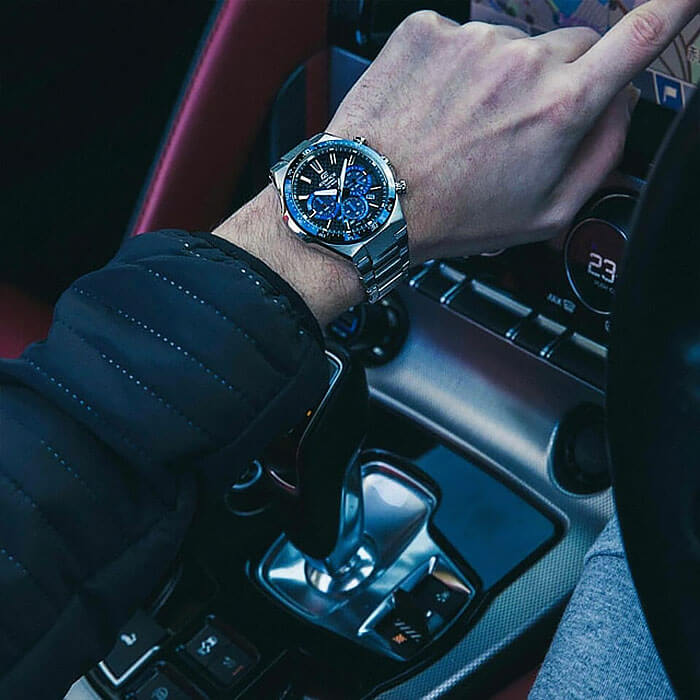 Японские мужские часы из коллекции Edifice - ваше стильное дополнение к любому образу, стальной хронографХронографФункция позволяет измерять отрезки времени с особой точностью: часы, минуты, секунды. Верным признаком хронографа является наличие на циферблате 3 дополнительных окошек-счётчиков. будет уместно смотреться на любом мероприятии.