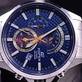 Стильные японские наручные кварцевые мужские часы. Круглый корпус и браслет часов выполнены из стали с антикоррозийными свойствами. Синий карбоновый циферблат с контрастными элементами дизайна. Водонепроницаемость 10 ATM. Минеральное стекло, устойчивое к появлению царапин. Часы оснащены функцией хронографа.