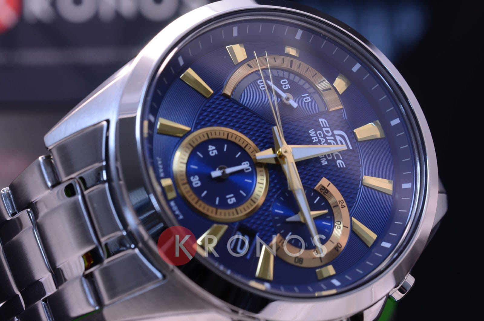Японские мужские часы из коллекции Edifice, представляющие собой аксессуар с автомобильным характером.