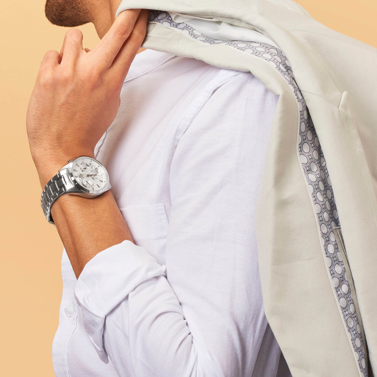 Кварцевый хронографХронографФункция позволяет измерять отрезки времени с особой точностью: часы, минуты, секунды. Верным признаком хронографа является наличие на циферблате 3 дополнительных окошек-счётчиков. понравится любителям активного образа жизни, динамичный дизайн модели станет отображением вашей жизненной позиции и стремления к победам. Светлый циферблат с узором дополнен миниатюрными счётчиками, отличающимися оригинальным исполнением и расположением. Минеральное стекло устойчиво к царапинам. Срок службы батарейки - 3 года. Люминесцентная подсветкаЛюминесцентное покрытиеПозволяет считывать показания времени в темноте. Производители наносят на стрелки, часовые индексы, безель или поверхность циферблата светонакопительный состав, дающий холодное свечение.. Водонепроницаемость до 10 бар, чему дополнительно способствует закручивающаяся крышка. Секундомер, отображение даты. Габариты: 51 x 43,8 x 12,4 мм.