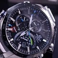 Компанией Casio была представлена новая модель часов - EQB-501 Изделие может подключаться к смартфону через Bluetooth, это дает возможность владельцу часов всегда знать точное время, где бы он не находился Стильный дизайн EQB-501 сразу бросается в глаза: строгий черный цвет и элементы синего оттенка на циферблате выделят владельца часов и подчеркнут его серьезность и статусность Отдельным преимуществом новинки является совмещенное взаимодействие со смартфоном владельца: на часах отображаются всевозможные уведомления и сообщения, которые приходят на телефон Также имеется функция поиска телефона: если по какой-то причине гаджет не удается найти, стоит только нажать кнопку на часах, как телефон сразу начнет издавать звуковые сигналы EQB-501 полностью автономны - заряжаются они при помощи солнечной батареи