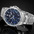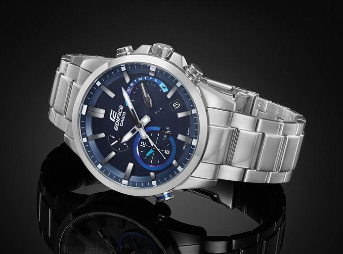 Современные, функциональные наручные кварцевые мужские часы. Круглый корпус выполнены из высокопрочной стали. Синий фон циферблата и стальные элементы дизайна. Водонепроницаемость часов составляет 10 ATM. Сферическое минеральное стекло, устойчивое к появлению царапин. Браслет из прочной нержавеющей стали надежный, прочный и элегантный. Bluetooth, солнечная батарейка, неоновый дисплей, функция мирового времени,  функция секундомера, автоматический календарь.