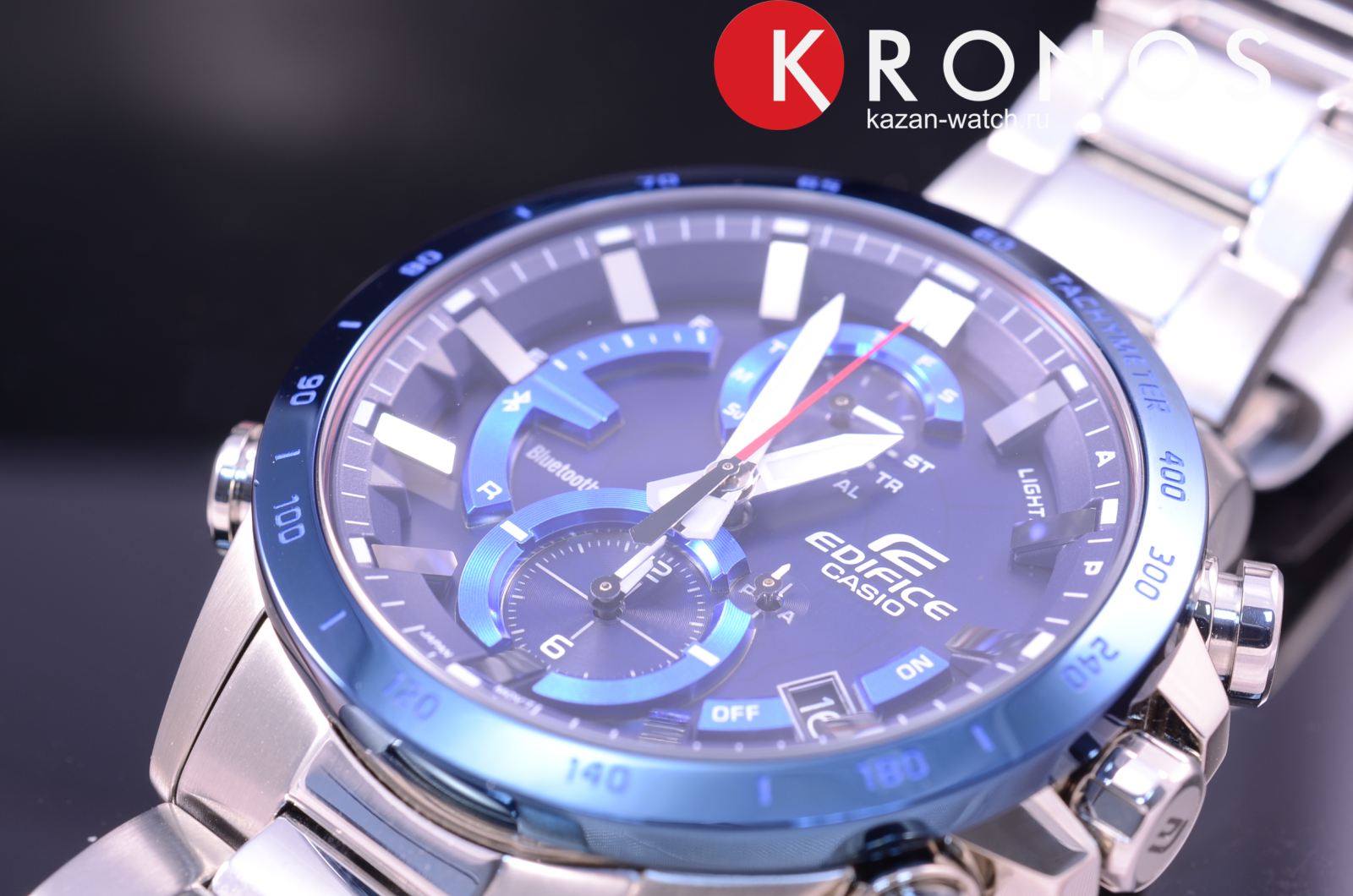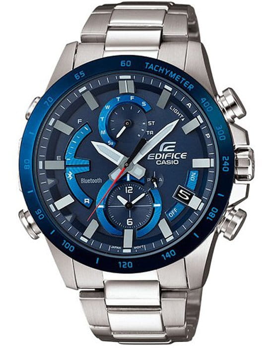 Перед вами модель из серии EQB-900 в стальном корпусе с синим безелем и циферблатом! В отличие от своим знаменитых собратьев по серии - EQB-500 у данной модели помимо необрайтового напыления появилась светодиодная подсветка, часы стали компактнее в диаметре, тоньше и легче на 25%! Модель автоматически соединяется с сервером точного времени в интернете через Bluetooth с помощью вашего смартфона 4 раза в день, что гарантирует абсолютную точность времени на вашем запястье.