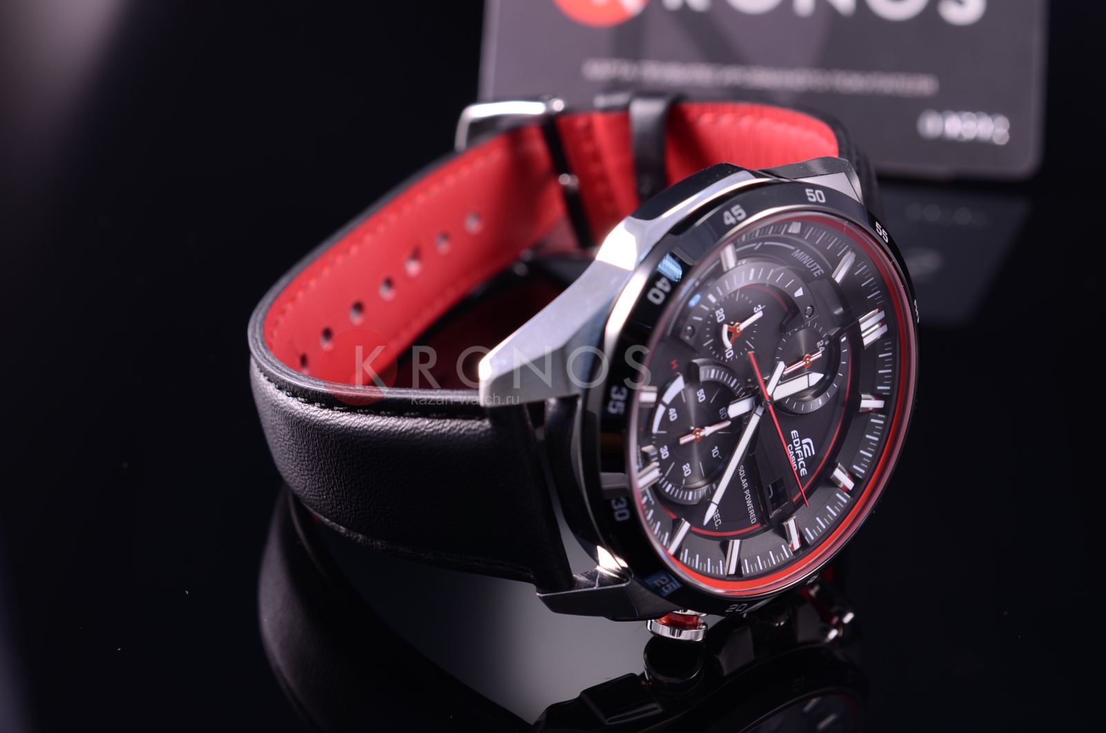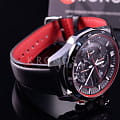 Стильный спортивный хронографХронографФункция позволяет измерять отрезки времени с особой точностью: часы, минуты, секунды. Верным признаком хронографа является наличие на циферблате 3 дополнительных окошек-счётчиков., выдержанный в драйвовой автомобильной тематике, станет ключевой деталью вашего образа. Красные элементы привлекательно смотрятся на чёрном фоне. Наручные часы отличаются ударопрочным корпусомУдаропрочный корпусМеханизм заключён в корпус, выполненный из современных материалов, устойчивых к ударам, механическим повреждениям и падению с высоты: инновационный пластик, карбон, нержавеющая сталь, титан. из антикоррозионной стали 316L. Точность хода японского кварцевого калибра составляет +/- 20 секунд в месяц. Технология питания от солнечного света . Индикатор уровня зарядки аккумулятора. Закручивающаяся задняя крышка. Подсветка NeobriteПодсветка NeobriteИспользование светонакопительных составов на основе сульфида цинка или алюмината стронция, яркий свет можно наблюдать на протяжении 6-10 часов после «зарядки» часов около источника света.. БезельБезельВнешний ободок, закрепляющий стекло. В спортивных часах так называется поворотное кольцо с делениями на циферблате, выполняет роль таймера – замеряет отрезки времени на шкале. Неподвижный безель – элемент декора. Однонаправленно вращающийся безель на дайверских часах позволяет фиксировать моменты погружения и выныривания на поверхность. с IP-покрытиемIP-покрытиеМетод ионного напыления. Демонстрирует повышенную устойчивость к истиранию, окислению и химическим веществам. Под воздействием высокого давления и температуры около 1500°C молекулы металла надёжно соединяются с частицами корпуса часов.. Ремешок из натуральной кожи. Минеральное стекло. Секундомер, отображение числа. Габариты: 52,9 x 49 x 13,2 мм.