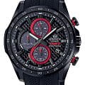 Лимитированная модель Edifice со спортивным характером из новой серии EQS-900 в черном ионизированном стальном корпусе с текстурированным карбоновым аналоговым циферблатом и каучуковым ремешком.