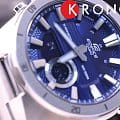 Стильный синий циферблат в динамичном оформлении имеет крупную индикацию времени, благодаря чему обеспечивается идеальная читаемость показателей в любых условиях. Красиво смотрится блестящий алюминиевый безельБезельВнешний ободок, закрепляющий стекло. В спортивных часах так называется поворотное кольцо с делениями на циферблате, выполняет роль таймера – замеряет отрезки времени на шкале. Неподвижный безель – элемент декора. Однонаправленно вращающийся безель на дайверских часах позволяет фиксировать моменты погружения и выныривания на поверхность.. Наручные часы с кварцевым механизмом работают от батарейки, рекордный эксплуатационный срок которой составит 10 лет. Минеральное стекло. Завинчивающаяся задняя крышка. Люминесцентная подсветкаЛюминесцентное покрытиеПозволяет считывать показания времени в темноте. Производители наносят на стрелки, часовые индексы, безель или поверхность циферблата светонакопительный состав, дающий холодное свечение.. Водостойкость 10 бар. Браслет из нержавеющей стали 316L. Записная книжка на 30 записей, таймер, будильник, мировое времяМировое время Полезное часовое усложнение, отображающее время в основных городах и известных областях по всему миру, оно связано с часовыми поясами, удобно для путешественников и бизнесменов. , автоматический календарь, секундомер. Габариты: 52 x 47,6 x 14,2 мм.