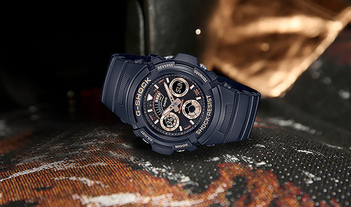 Компактный аксессуар имеет противоударный корпусУдаропрочный корпусМеханизм заключён в корпус, выполненный из современных материалов, устойчивых к ударам, механическим повреждениям и падению с высоты: инновационный пластик, карбон, нержавеющая сталь, титан. из полимерного материала, способного выдерживать падения с высоты и повреждения. Привлекательно смотрится безельБезельВнешний ободок, закрепляющий стекло. В спортивных часах так называется поворотное кольцо с делениями на циферблате, выполняет роль таймера – замеряет отрезки времени на шкале. Неподвижный безель – элемент декора. Однонаправленно вращающийся безель на дайверских часах позволяет фиксировать моменты погружения и выныривания на поверхность. из нержавеющей стали 316L с IP-покрытиемIP-покрытиеМетод ионного напыления. Демонстрирует повышенную устойчивость к истиранию, окислению и химическим веществам. Под воздействием высокого давления и температуры около 1500°C молекулы металла надёжно соединяются с частицами корпуса часов., а также детали в цвете розового золота. Аналого-цифровые часы работают от батарейки, рассчитанной на 3 года безупречной эксплуатации. Минеральное стекло. Автоматическая светодиодная подсветкаСветодиодная подсветкаСветодиодная или LED-подсветка обеспечивает появление яркого холодного свечения за счёт LED-элементов - маленьких лампочек. Они потребляют минимальное количество энергии, чаще всего можно встретить 1 светодиод, в нижней части циферблата. дисплея, стрелки и метки с люминесцентным покрытиемЛюминесцентное покрытиеПозволяет считывать показания времени в темноте. Производители наносят на стрелки, часовые индексы, безель или поверхность циферблата светонакопительный состав, дающий холодное свечение.. 12/24-часовое отображение времени. Надёжный полимерный ремешок. Водонепроницаемость 200 метров. Дополнительные возможности: таймер, будильник, мировое времяМировое время Полезное часовое усложнение, отображающее время в основных городах и известных областях по всему миру, оно связано с часовыми поясами, удобно для путешественников и бизнесменов. , секундомер, автоматический календарь. Габариты: 46,4 x 52 x 14,9 мм.