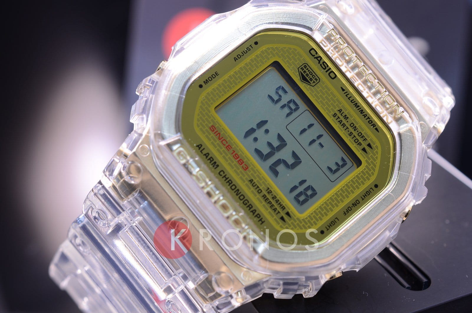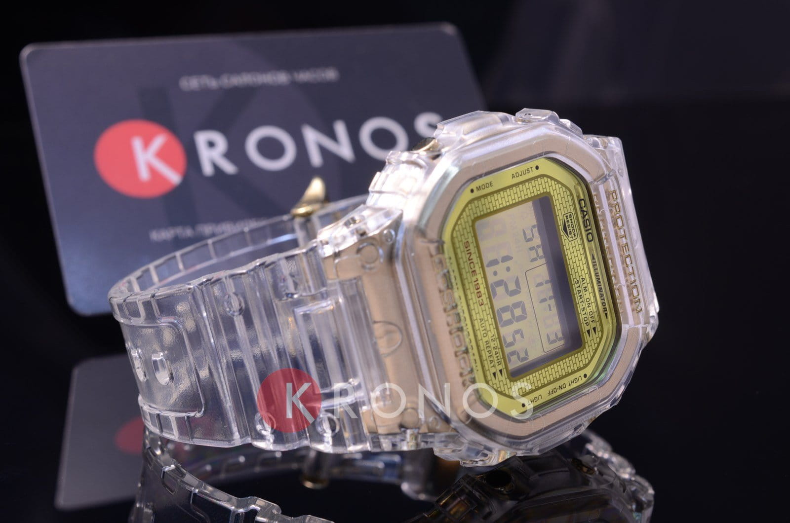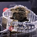 Лимитированная коллекция, под названием "Glacier Gold" - это настоящий подарок всем поклонникам G-Shock Модельный ряд был выпущен в честь 35-летия бренда G-Shock "Ледяное золото" - такое название получила коллекция благодаря изначальному ее концепту Во время работы дизайнеры опирались на образ ледяной глыбы, огромного куска льда, который выглядит мощно, красиво и завораживающе Таким образом подчеркивается невероятная надежность и "живучесть" часов даже в самых неблагоприятных и экстремальных условиях Корпус и циферблат изделия имеют золотистый цвет Часы покрыты особым полиуретаном (прозрачным)