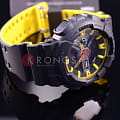 Наручные часы в яркой чёрно-жёлтой расцветке станут главной деталью вашего образа. Модель отличается внушительным внешним видом, многоуровневым циферблатом, оригинальными элементами циферблата. Японский кварцевый механизм находится внутри пластикового противоударного корпусаУдаропрочный корпусМеханизм заключён в корпус, выполненный из современных материалов, устойчивых к ударам, механическим повреждениям и падению с высоты: инновационный пластик, карбон, нержавеющая сталь, титан., выдерживающего высокие нагрузки. Стильным решением стал полимерный двухслойный ремешок с жёлтой внутренней стороной. Батарейка рассчитана на 2 года. Закаленное минеральное стекло. Светодиодная подсветкаСветодиодная подсветкаСветодиодная или LED-подсветка обеспечивает появление яркого холодного свечения за счёт LED-элементов - маленьких лампочек. Они потребляют минимальное количество энергии, чаще всего можно встретить 1 светодиод, в нижней части циферблата. циферблата. Водонепроницаемость 20 бар. Возможности: хронографХронографФункция позволяет измерять отрезки времени с особой точностью: часы, минуты, секунды. Верным признаком хронографа является наличие на циферблате 3 дополнительных окошек-счётчиков., автоматический календарь до 2099 года, секундомер, расчёт средней скорости пройденной дистанции, таймер, мировое времяМировое время Полезное часовое усложнение, отображающее время в основных городах и известных областях по всему миру, оно связано с часовыми поясами, удобно для путешественников и бизнесменов. , будильник. Габариты: 55 x 51,2 x 16,9 мм.