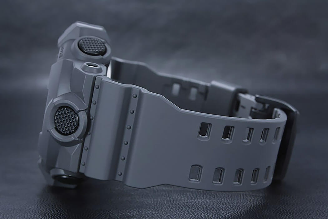 Аналого-цифровая модель в лаконичном сером исполнении идеально подойдёт для ношения в любой ситуации, гармонично смотрится контрастный циферблат с крупными элементами дизайна. Часы в стиле милитари из серии GA-700 обладают противоударным корпусомУдаропрочный корпусМеханизм заключён в корпус, выполненный из современных материалов, устойчивых к ударам, механическим повреждениям и падению с высоты: инновационный пластик, карбон, нержавеющая сталь, титан. из полимерного пластика, стойко переносящим любые механические повреждения. Батарейка рассчитана на 5 лет службы. Водонепроницаемость до 20 бар. Минеральное стекло устойчиво к появлению царапин. ЛюминесцентнаяЛюминесцентное покрытиеПозволяет считывать показания времени в темноте. Производители наносят на стрелки, часовые индексы, безель или поверхность циферблата светонакопительный состав, дающий холодное свечение. и светодиодная подсветкаСветодиодная подсветкаСветодиодная или LED-подсветка обеспечивает появление яркого холодного свечения за счёт LED-элементов - маленьких лампочек. Они потребляют минимальное количество энергии, чаще всего можно встретить 1 светодиод, в нижней части циферблата.. Дополнительные возможности: функция перемещения стрелок, включение и выключение звука кнопок, секундомер, мировое времяМировое время Полезное часовое усложнение, отображающее время в основных городах и известных областях по всему миру, оно связано с часовыми поясами, удобно для путешественников и бизнесменов. , таймер с автоповтором, UTCUTCВсемирное кординационное время, не имеющее привязки к географическому положению Гринвича, основывается на атомном отсчёте времени. Регулировка времени осуществляется более точно, чем устаревшее GMT.