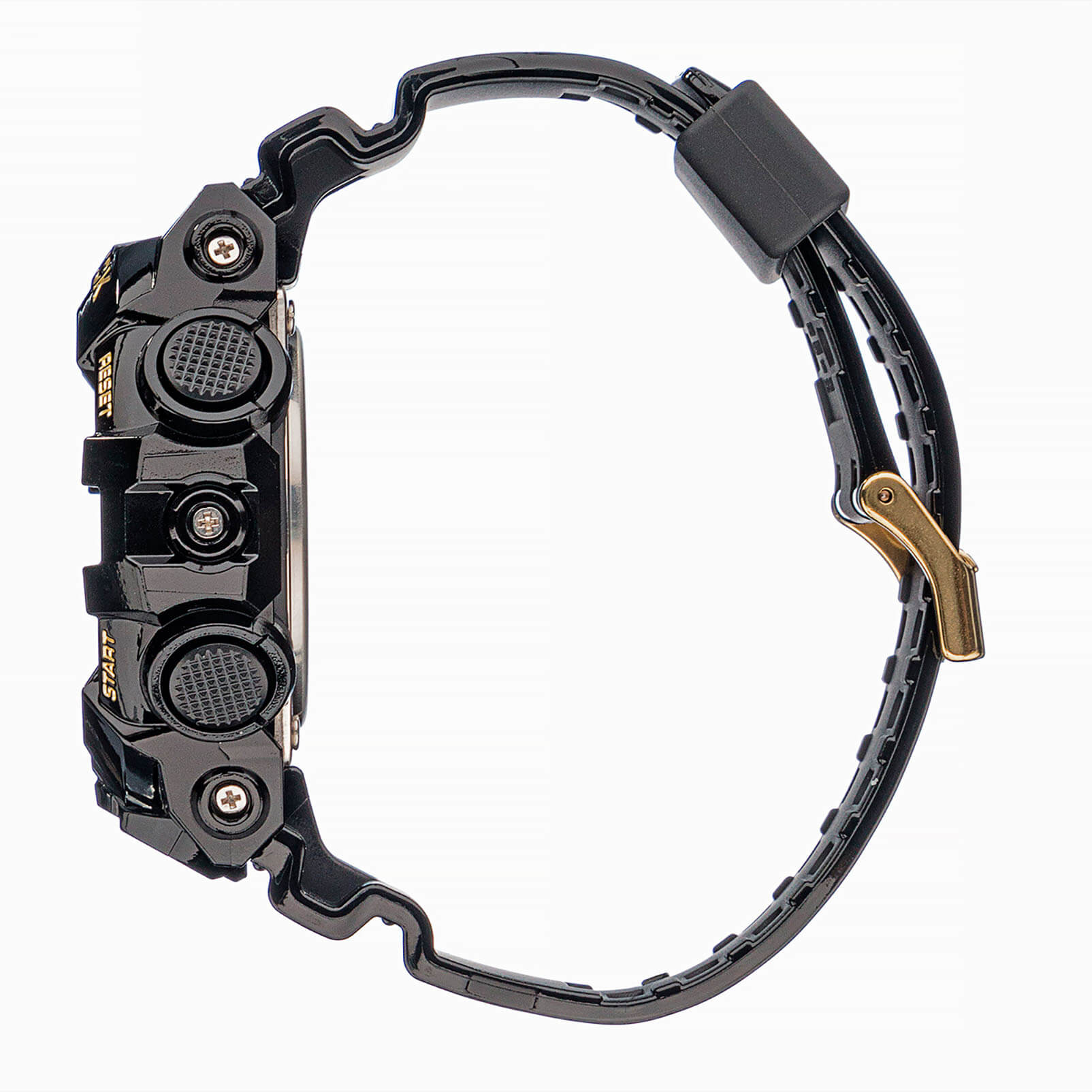 Наручные часы серии G-Classic Collection сразу бросаются в глаза за счёт золотистого циферблата с продуманным расположением деталей. Универсальный аксессуар представлен в спортивном стиле и обладает крупной индикацией времени. Глянцевый противоударный корпусУдаропрочный корпусМеханизм заключён в корпус, выполненный из современных материалов, устойчивых к ударам, механическим повреждениям и падению с высоты: инновационный пластик, карбон, нержавеющая сталь, титан. и ремешок изготовлены из полимерного пластика, такой материал высоко ценится за счёт устойчивости к ударам и повреждениям. Японский кварцевый механизм работает от батарейки CR2016, рассчитанной на 5 лет использования. Минеральное стекло. Удобная кнопка светодиодной подсветкиСветодиодная подсветкаСветодиодная или LED-подсветка обеспечивает появление яркого холодного свечения за счёт LED-элементов - маленьких лампочек. Они потребляют минимальное количество энергии, чаще всего можно встретить 1 светодиод, в нижней части циферблата. на лицевой части. Водозащита 200 метров. 12/24-отображение времени. Секундомер, мировое времяМировое время Полезное часовое усложнение, отображающее время в основных городах и известных областях по всему миру, оно связано с часовыми поясами, удобно для путешественников и бизнесменов. - 31 часовой пояс, таймер, хронографХронографФункция позволяет измерять отрезки времени с особой точностью: часы, минуты, секунды. Верным признаком хронографа является наличие на циферблате 3 дополнительных окошек-счётчиков., 5 будильников, UTCUTCВсемирное кординационное время, не имеющее привязки к географическому положению Гринвича, основывается на атомном отсчёте времени. Регулировка времени осуществляется более точно, чем устаревшее GMT.
