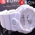 Белоснежные наручные часы с противоударным корпусомУдаропрочный корпусМеханизм заключён в корпус, выполненный из современных материалов, устойчивых к ударам, механическим повреждениям и падению с высоты: инновационный пластик, карбон, нержавеющая сталь, титан. сделаны из полимерного пластика, который устойчив к повреждениям и падению с высоты. Такой же материал был выбран и для гибкого ремешка, обеспечивающего комфортное ношение. Это первая модель из линейки G-Shock, оснащённая шагомером, теперь вы сможете в любое время следить за своей активностью. Японский кварцевый механизм работает от батарейки, срок её службы - 2 года. Минеральное стекло. Светодиодная подсветкаСветодиодная подсветкаСветодиодная или LED-подсветка обеспечивает появление яркого холодного свечения за счёт LED-элементов - маленьких лампочек. Они потребляют минимальное количество энергии, чаще всего можно встретить 1 светодиод, в нижней части циферблата. циферблата, люминесцентное покрытиеЛюминесцентное покрытиеПозволяет считывать показания времени в темноте. Производители наносят на стрелки, часовые индексы, безель или поверхность циферблата светонакопительный состав, дающий холодное свечение. стрелок. Bluetooth-синхронизацияBluetoothСовременная технология, позволяющая синхронизировать часы с телефоном и переносить данные. Часы с Bluetooth расширяют возможности вашего смартфона и делают его использование ещё более удобным., таймер с автоповтором, секундомер, автоматический календарь, будильник. Водостойкость при давлении 20 бар. Габариты: 54,1 x 48,6 x 15,5 мм.
