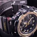 Классические наручные кварцевые мужские часы. Ударопрочный круглый корпус часов выполнен из высокопрочной стали с IP покрытием со вставками из пластика. Синий фон циферблата и золотые 3D элементы дизайна. Безель из стали с IP покрытием золотого цвета. Водонепроницаемость часов составляет 20 ATM (возможны занятия дайвингом). Минеральное стекло, устойчивое к появлению царапин. Часы прочно удерживаются на руке ремешком из синего пластика. Неоновый дисплей Neobrite, будильник, таймер обратного отсчета, функция смещения стрелок, термометр, компас, приливный календарь
