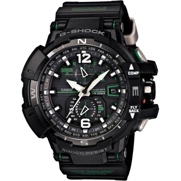 Ударопрочные многофункциональные наручные часы с автоподстройкой по радиосигналам точного времени оснащенные функцией калибровки положений стрелок. Точность хода: не хуже +/-15 секунд в месяц. Автоматическая коррекция показаний по радиосигналам точного времени. Встроенный датчик температуры. Отображение текущего времени в основных городах и регионах мира. Секундомер с точностью показаний 1/20 сек и максимальным временем измерения - 1 час. Таймер обратного отсчета. Автоматический календарь. Особая ударопрочная конструкция защищает от ударов и вибрации. Сапфировое стекло устойчивое к возникновению царапин. Стекло имеет сферическую поверхность.